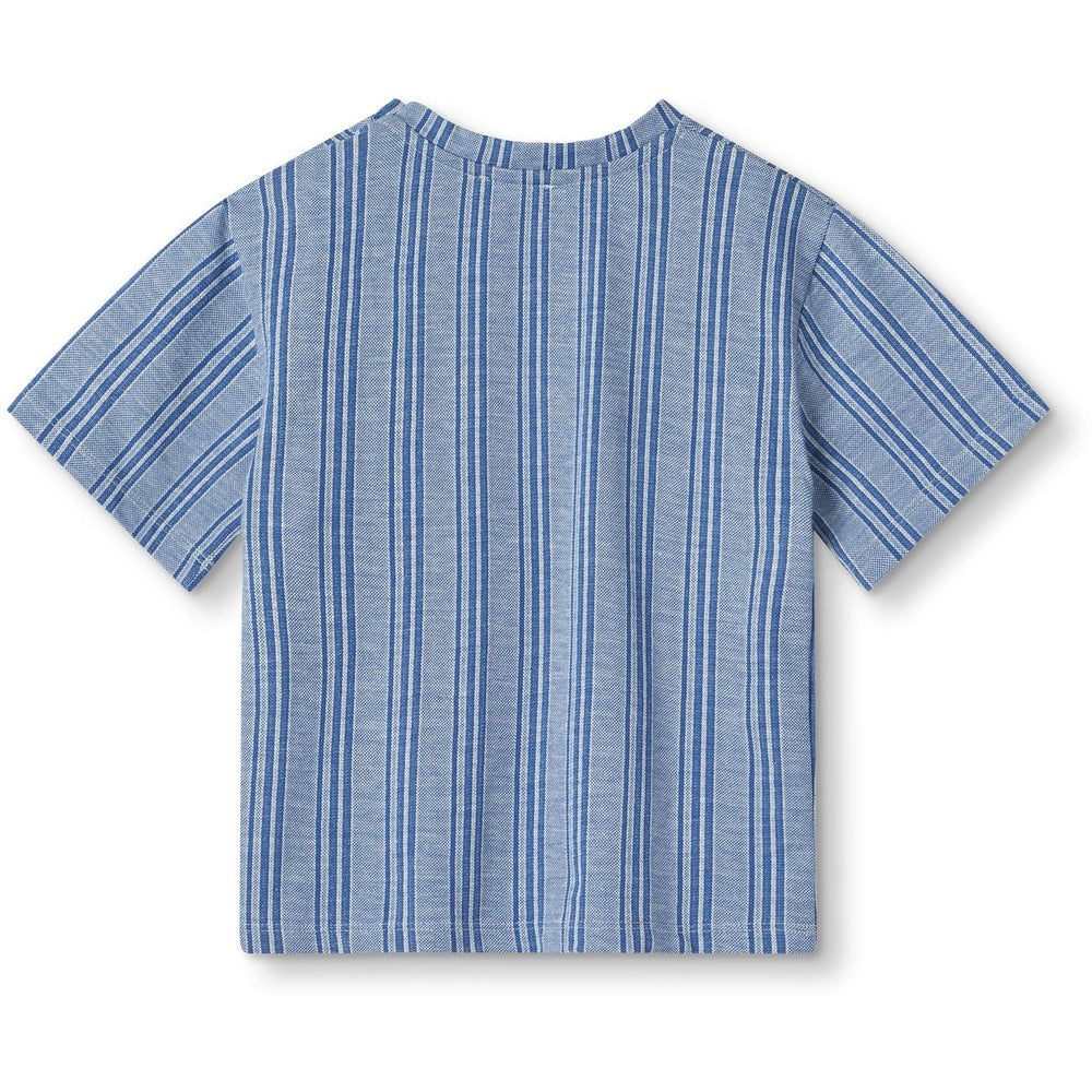 Soft, lightly striped T-shirt with a small pocket on the chest. The blouse has a loose fit that makes it perfect for playing in. The material is a knitted cotton that is stretchy and comfortable to wear.
