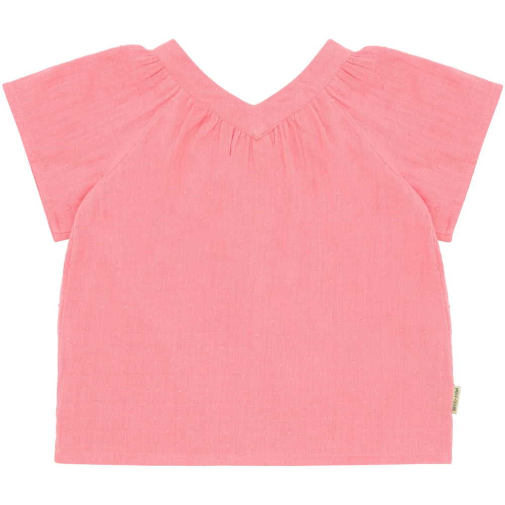 Dress your little one in the Hust & Claire Blushing HCRoselyn Shirt, beautifully crafted from 100% organic cotton. This charming V-neck shirt features elegant ruched details around the neck and practical button fastening at the back. Its soft, woven cotton ensures comfort and durability, making it perfect for both everyday play and special occasions. The natural fabric is easy to care for, promising effortless style and lasting wear.