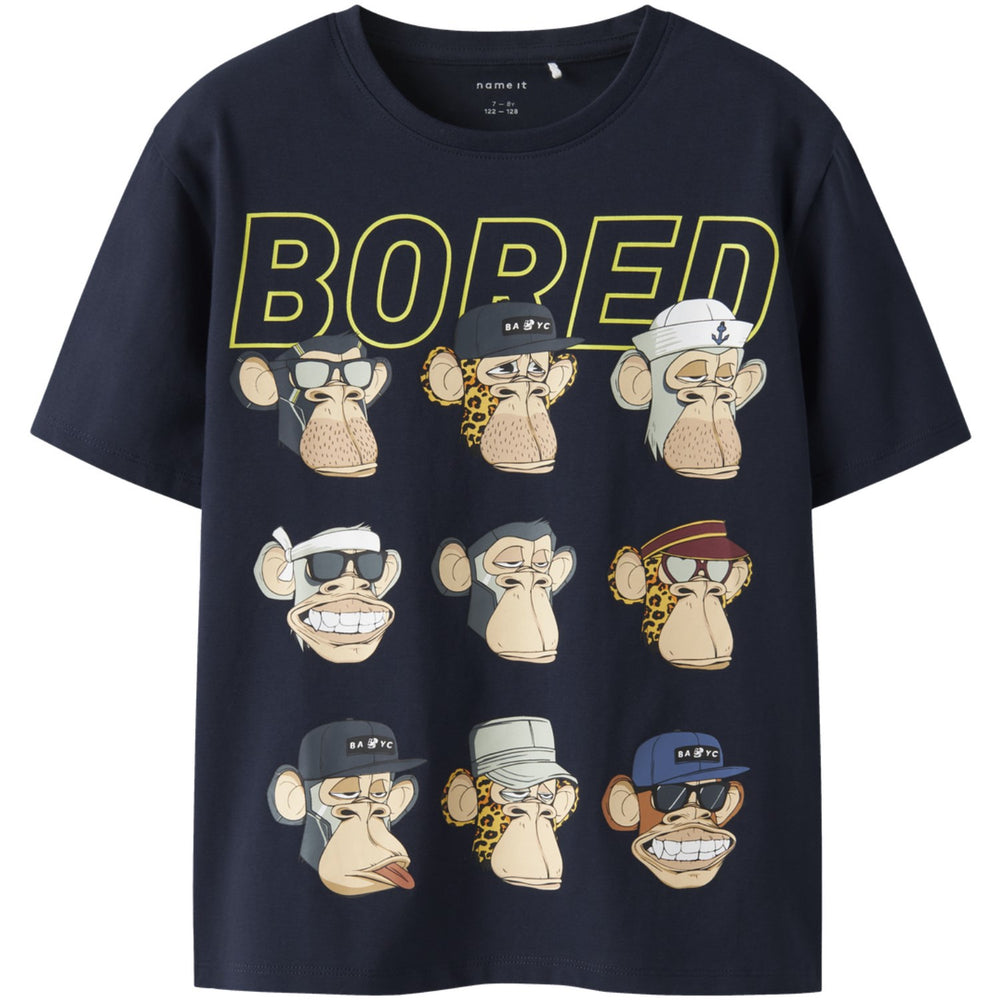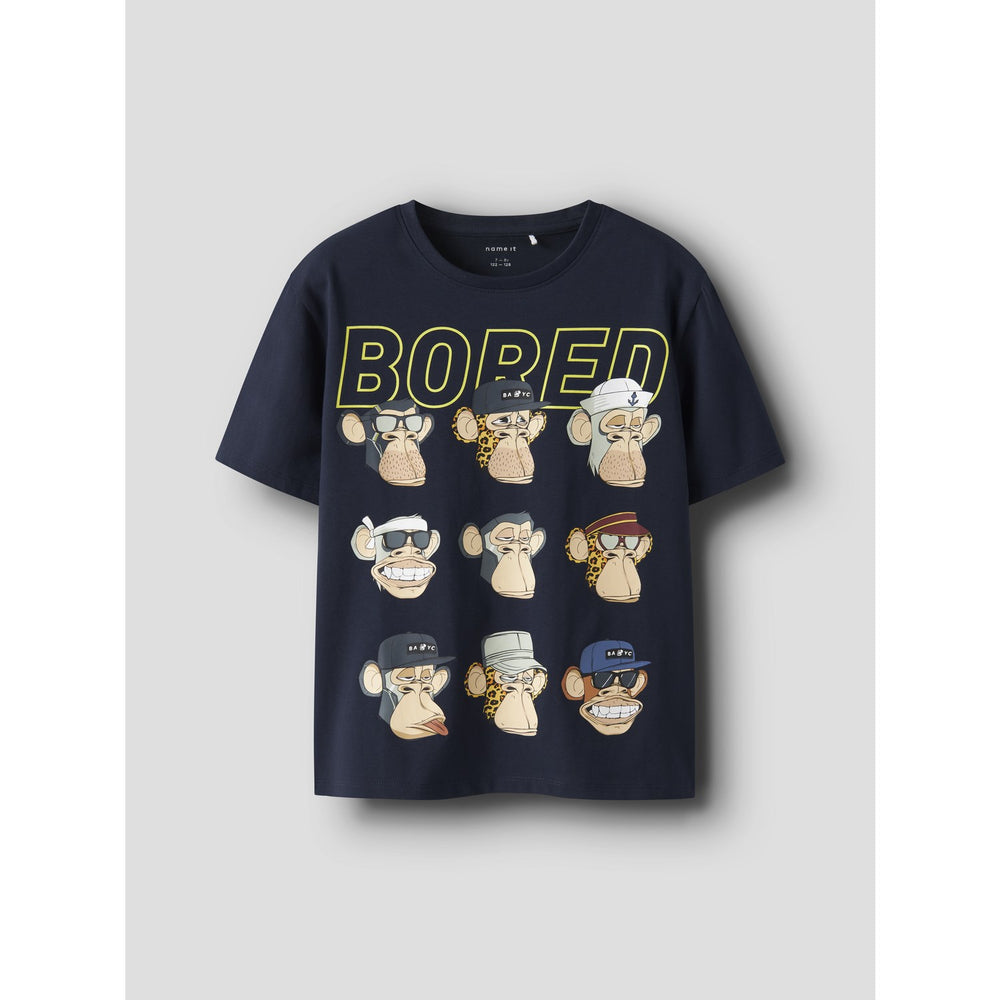 Adorned with a playful and tactile rubber print from the distinctive Bored of Directors series, part of the renowned Bored Ape Yacht Club, this top boasts a vibrant expression of character and uniqueness. Its regular fit coupled with a classic round neck and short sleeves enhances wearability and eases movement for active kids.