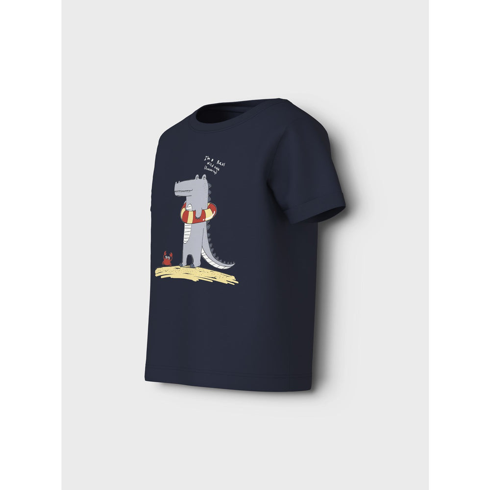 Introduce an element of fun and comfort to your child's everyday attire with the Name It Navy Blazer Wild One Vux T-Shirt. Crafted from soft, stretchy jersey fabric, this T-shirt ensures comfort and freedom of movement, making it perfect for both lively playdates and quiet days at home. Featuring a classic round neck and short sleeves, it is adorned with a charming, soft-feel rubber print. The regular fit ensures it suits all body types comfortably. Easy to care for, it's an ideal choice for both practicality and style, promising to become a favorite in your little one's wardrobe.