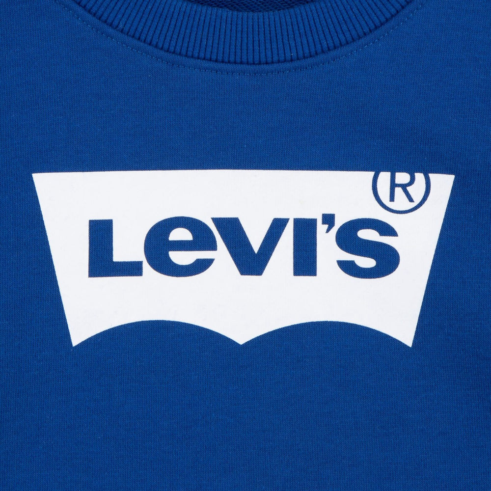 Delight your little one with the cozy Levi's Blue/White French Terry Batwing Sweatshirt. Crafted from soft, durable French Terry, this sweatshirt boasts the iconic Levi's batwing logo in a charming blue and white color scheme. Its relaxed fit ensures maximum comfort and easy mobility for active kids, while the maintenance is simple, ensuring it stays fresh and vibrant wear after wear. Perfect for both adventurous playdates and relaxed days at home, this sweatshirt adds a touch of timeless style to any child's wardrobe.