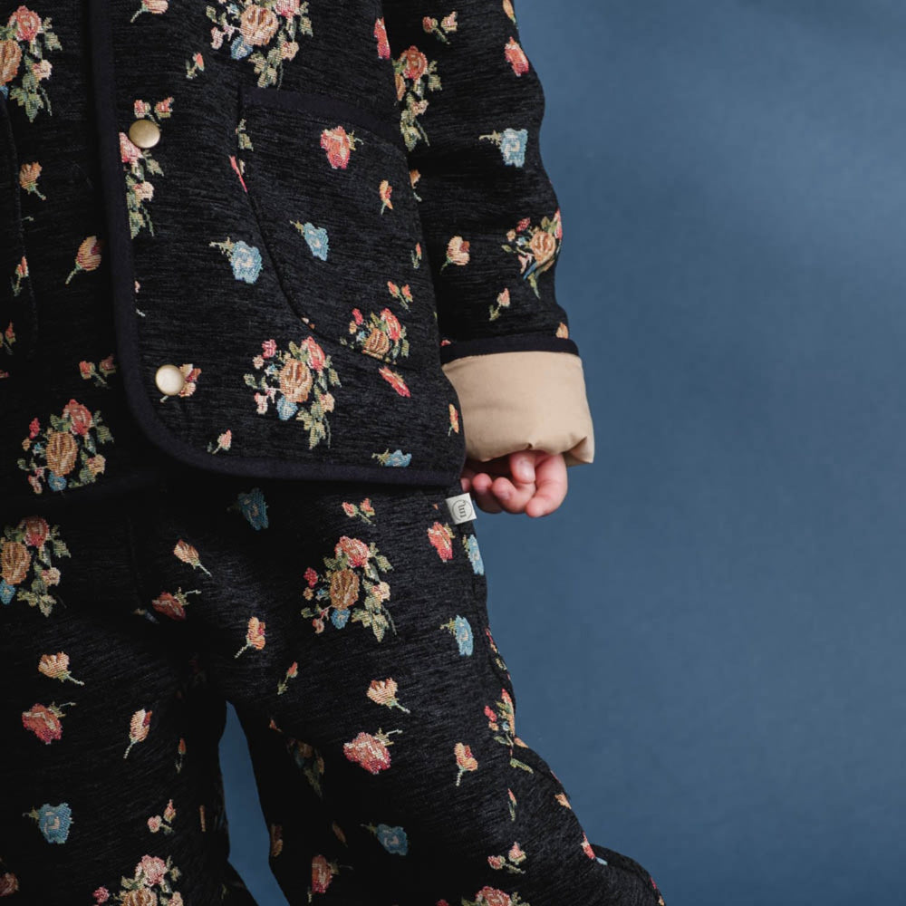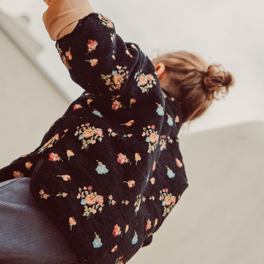 Explore the enchanting "Black Beauty Kylie Jacket" from That's Mine, perfect for your little one's adventures. Crafted from a unique woven fabric adorned with delicate floral patterns, this jacket features light padding for extra warmth and easy-to-manage snap buttons at the front. Its stylish design and comfortable fit ensure your child stays cozy and fashionable. Ideal for a playful day out or a chilly evening stroll, this versatile jacket blends functionality with a charming appeal, making it a must-have in your child's wardrobe.
