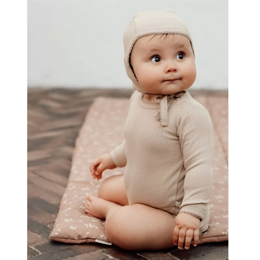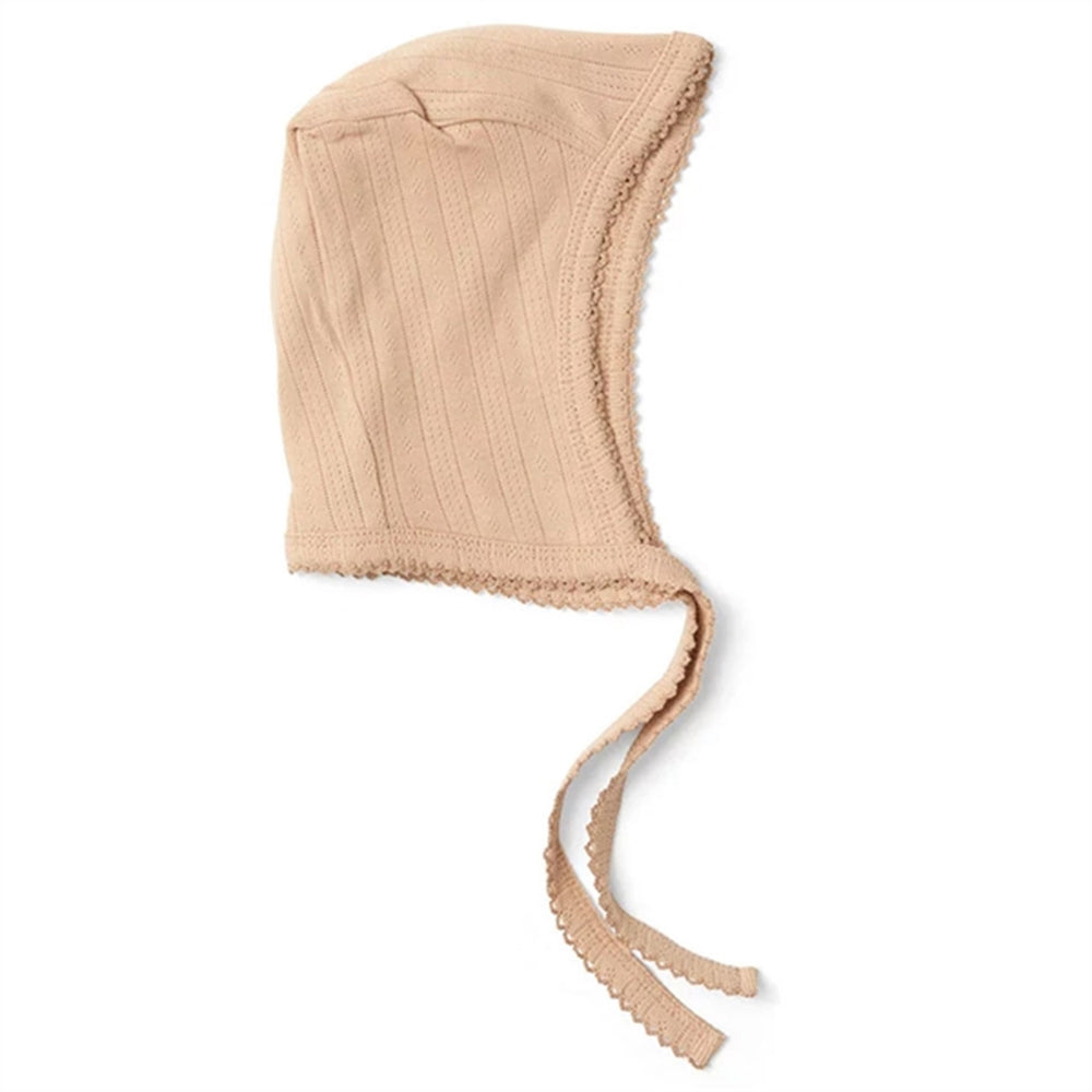 Really nice hat from That's Mine for the little ones. This one is in a nice light shade with a lace pattern. The hat has a tie and has a good shape that fits well on the little ones.