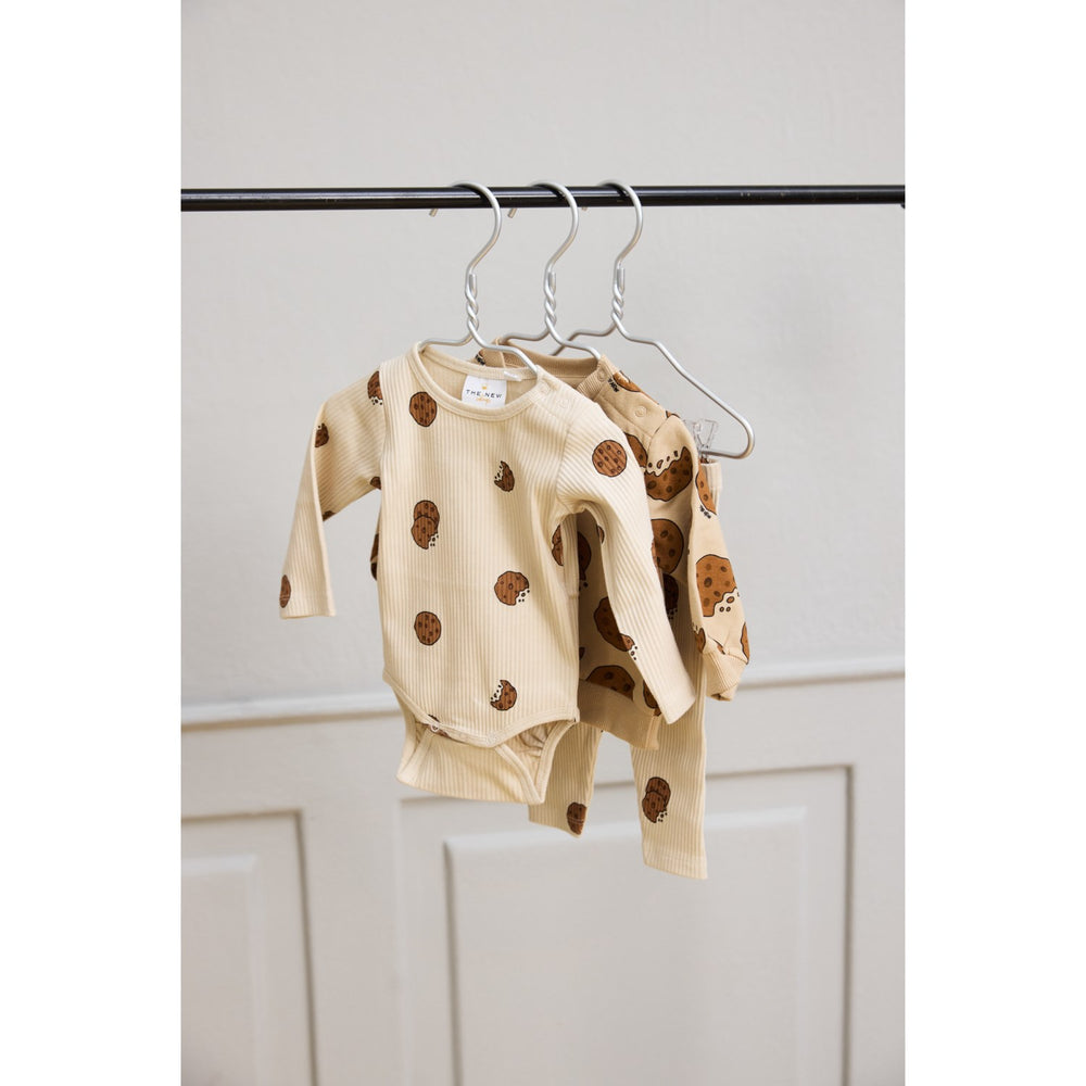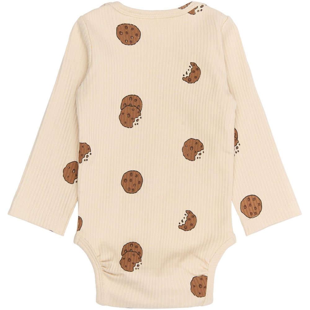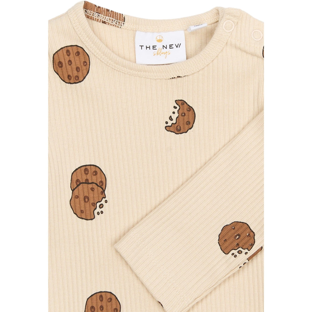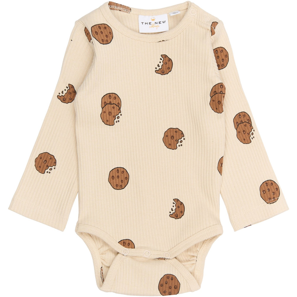 Discover the delightful charm of THE NEW Siblings Gardenia AOP Ryan L_S Rib Body, perfect for your little one's wardrobe. This bodysuit showcases a whimsical all-over cookie print that brings a playful vibe to any outfit. Crafted from GOTS-certified organic materials, it ensures softness and comfort against your child's delicate skin. The slim fit design, combined with practical snap buttons at the shoulders and bottom, provides ease of dressing and undressing, catering to both playtime and relaxation. An ideal blend of style and functionality, this adorable bodysuit promises to keep your baby happy and comfortable throughout their day.
