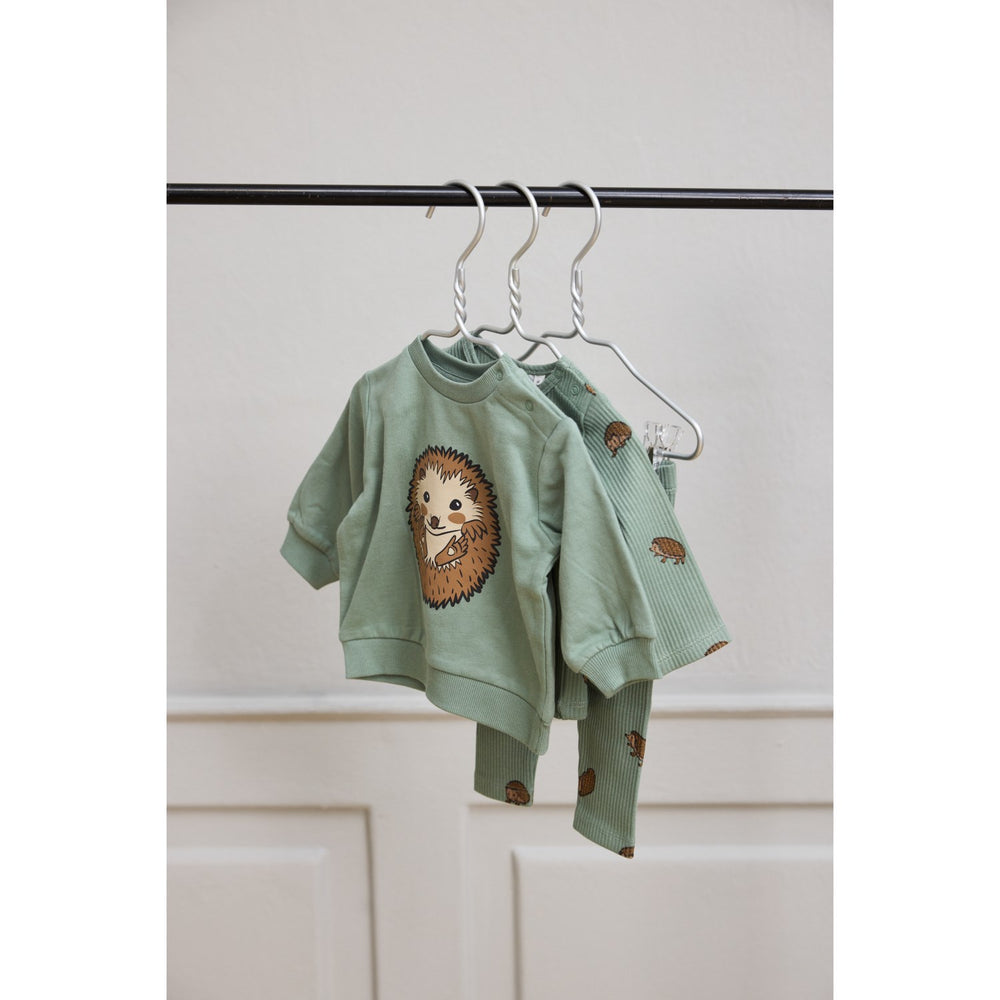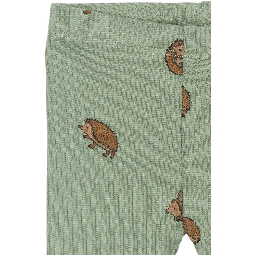 Brighten your little one's wardrobe with the charming THE NEW Siblings Lily Pad AOP River Rib Leggings, a delightful addition that combines fashion and comfort. These adorable leggings sport a vibrant all-over hedgehog print, bringing a playful touch to your child's attire. Crafted with GOTS Organic certified fabric, these leggings promise a soft and supple feel, ensuring comfort throughout the day.
