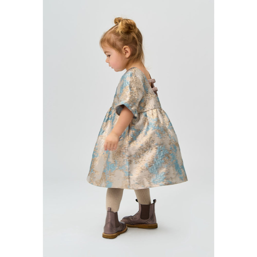 Discover the charm and elegance of THE NEW Siblings Tempest Reese S_S Dress, a stunning choice for young fashionistas. Crafted from shimmering jacquard fabric adorned with a delicate floral pattern, this dress shines with sophistication. Its flared silhouette creates a gentle volume, complemented by short flutter sleeves that enhance its festive flair. Designed with both style and comfort in mind, this dress ensures children can play and explore freely while looking fabulous. Ideal for birthday parties, weddings, or any special gathering, it promises to keep your little one comfortable and in style throughout the event. Easy to care for and irresistible in design, the Tempest Reese dress is a must-have for making memorable moments.