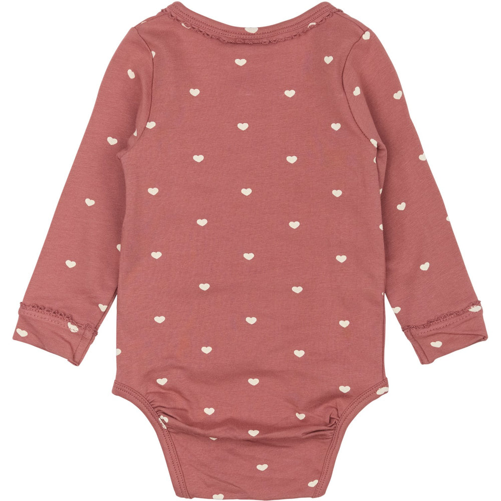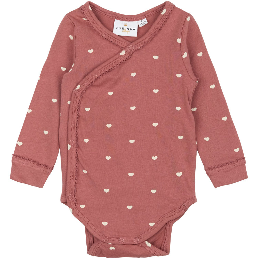 Adorn your little one in the style and comfort of THE NEW Siblings Withered Rose AOP TNSBNova L_S Wrap Body. This long-sleeved wrap bodysuit features a charming withered rose color adorned with small, delicate heart prints, perfect for adding a touch of sweetness to your baby's wardrobe. Crafted from GOTS Organic certified soft cotton, it ensures breathability and comfort, ideal for your baby's delicate skin.