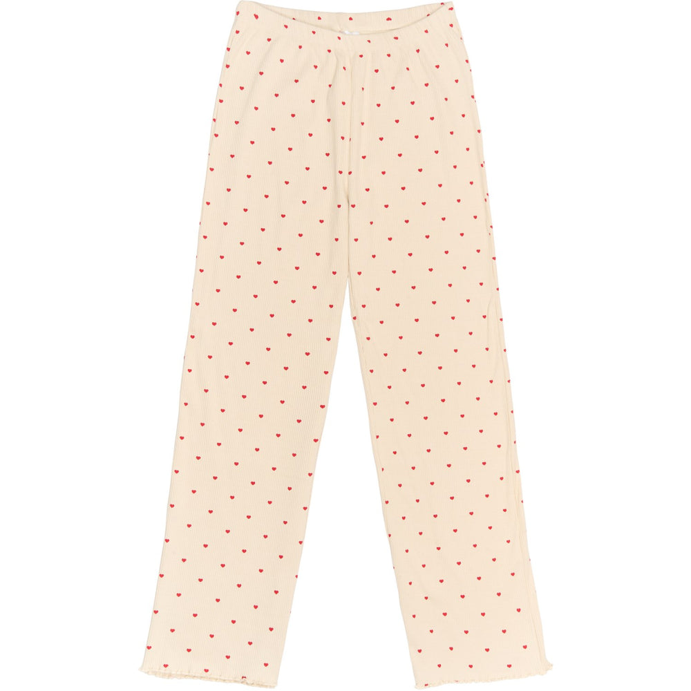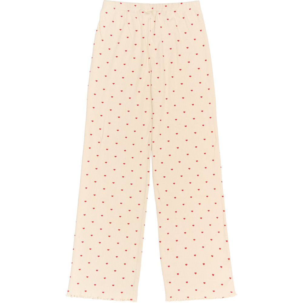 Discover the charm and comfort of the New Gardenia AOP Holiday Heart Adult Rib Night Set, ideal for unwinding during chilly evenings. Crafted from GOTS Organic certified ribbed fabric, this regular-fit set includes a long-sleeved blouse and matching pants, both adorned with a delightful cream color and a heartwarming all-over heart print. The stretchy material not only offers superb comfort but also ensures the set stays in place, providing an undisturbed sleep. With cozy babylock edges and available in a design that kids can also enjoy, it's perfect for family matching moments throughout the holiday season. Whether it’s gift-giving or personal use, this nightwear set promises a blend of style, coziness, and quality.