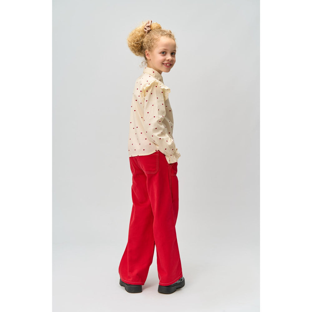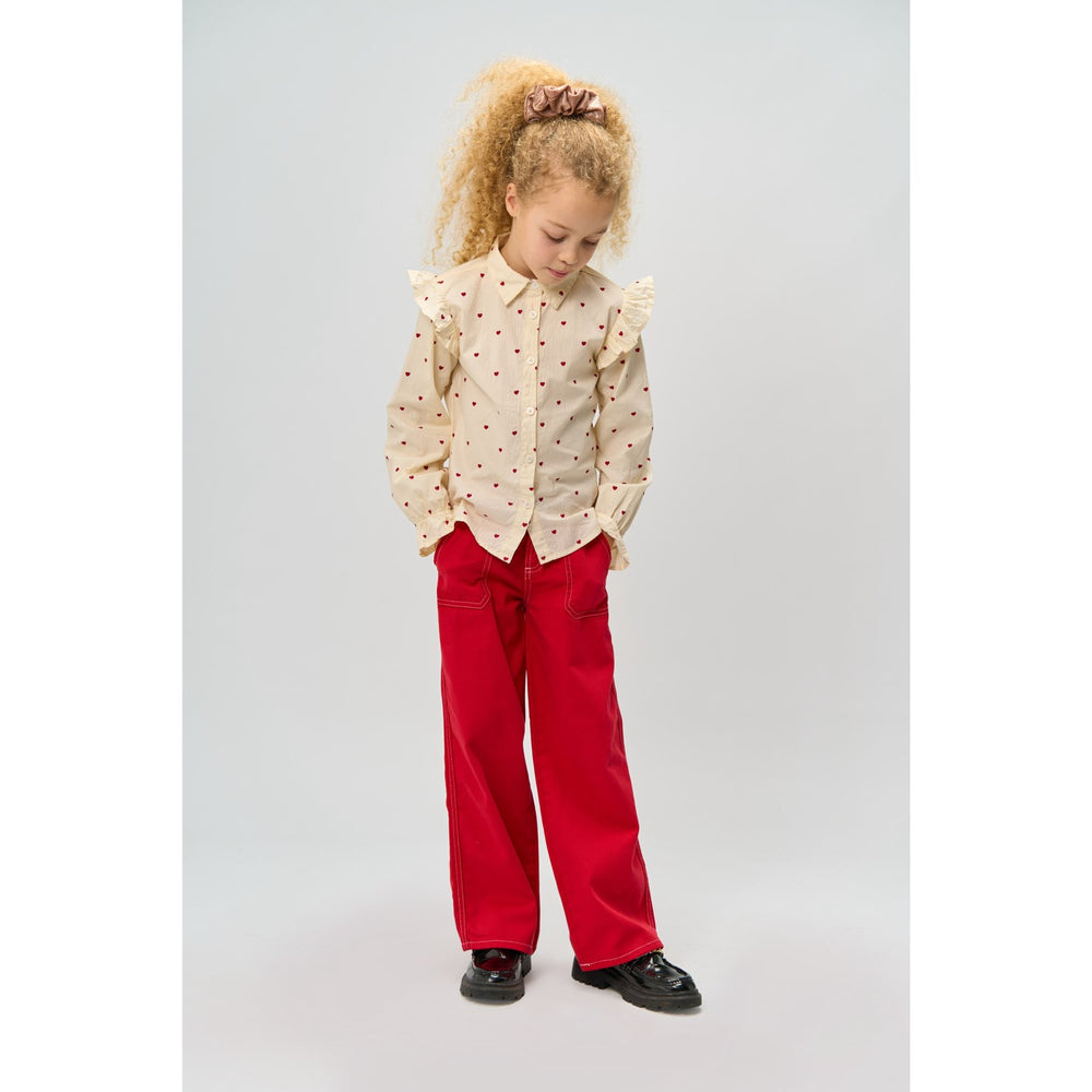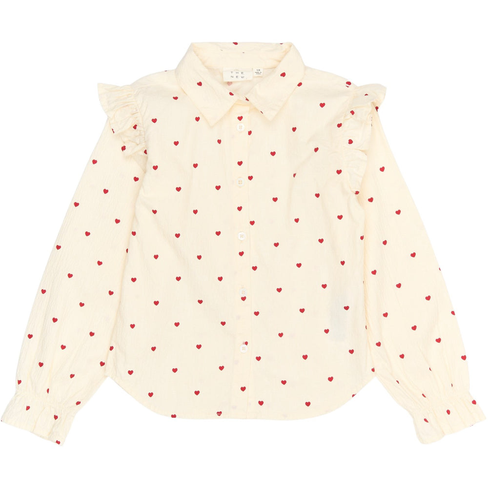Discover the charming New Gardenia AOP Ramona Shirt, ideal for adding a playful touch to your child's wardrobe. Crafted in a comfortable regular fit with long sleeves, this shirt features an adorable all-over heart print that radiates fun and style. The stylish flip collar and delicate frills on the shoulders add a unique, feminine flair. Whether it's for daily wear or special occasions, this shirt combines effortless chic with cozy comfort, making it a perfect choice for any event. Easy to care for, this piece ensures that your little one remains both comfortable and stylish all day long.