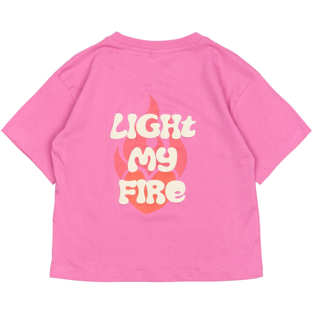 This t-shirt dazzles with its colorful flame prints and a playful heart emblem on the chest, merged beautifully with a bold "Light My Fire" text on the back in a retro font. Available in vivid shades of yellow and orange, it's designed to stand out. The easy-care fabric also ensures hassle-free maintenance, making it as practical as it is stylish.