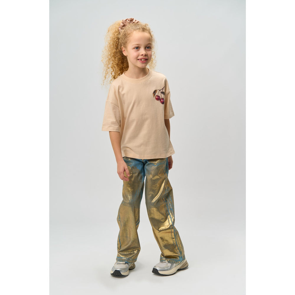 Discover the New Light Blue Denim Rosanna Wide Jeans – where style meets comfort. Crafted by THE NEW, these jeans feature a unique gold coating over classic denim, merging streetwear vibes with a touch of glamour. Their wide-leg design not only enhances your child's silhouette but also ensures freedom of movement, making them perfect for both playful days and special occasions.