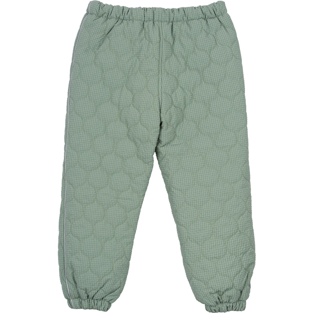 Introducing the Mikk-Line Green Bay Thermal Pant, the ideal choice for your child's outdoor adventures. Crafted with BIONIC-FINISH® ECO-treated waterproof fabric, these thermal pants boast small, elegant checks and a blend of style and practicality. They feature a durable and resilient material that is both windproof and breathable, ensuring maximum comfort with a breathability rate of 3,000 g/m²/24 hours and a water column pressure rating of 4,000 mm.