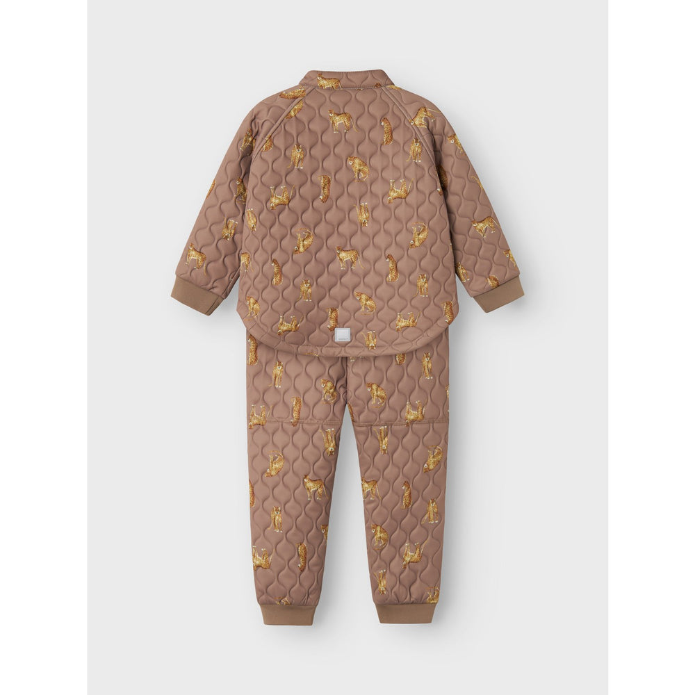 Dress your little explorer in the NAME IT Mountain Trail Leo Moon Quilted Set, a perfect blend of coziness and durability for your child's outdoor adventures. This quilt set, crafted from high-quality quilted material, features an eye-catching all-over print, ensuring your child stays stylish while benefitting from the set’s superior insulation. The design includes a practical zip fastening with a protective zip guard, ribbed cuffs, and handy side pockets for storing treasures. Durable and designed for action, this set has an adjustable waist and elasticated features for a snug fit, enhancing mobility and comfort. Plus, its ECO water-repellent finish ensures it's safe for both your child and the environment, free from harmful fluorine substances. Ideal for chilly days, NAME IT’s legacy since 1986 of prioritizing functionality, safety, and the latest in children's fashion shines through in every stitch, providing your child with nothing but the best in children's outerwear.