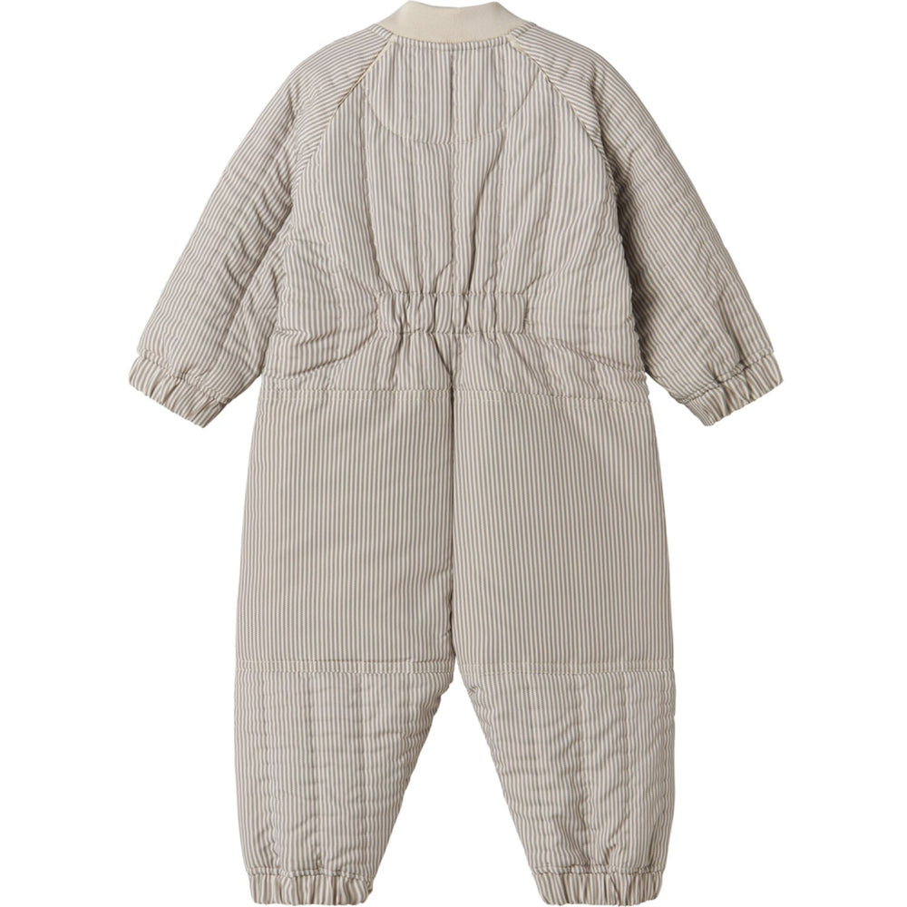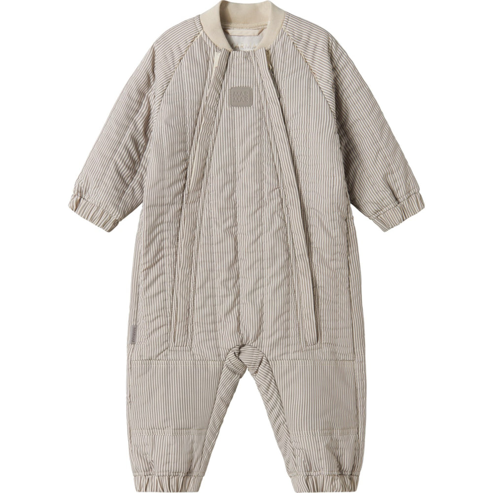 Introducing the MarMar Thermo Dark Brown Stripe Ozai Suit, perfect for staying cozy and stylish. Crafted from durable thermowear, this suit features a double zipper closure and reinforced areas on the behind and knees for extra durability. Its streamlined fit and ribbed neck opening ensure comfort, making it ideal as transitional clothing for your little one. Effortlessly blending functionality with a charming stripe design, this suit is a must-have for any child's wardrobe. Filling: 100% Polyester (Recycled) Lining: 100% Polyester (Recycled) Materials: 100% Polyester (Recycled) Washing instructions: Wash - Machine wash 30°C gentle, Bleach - Do not bleach , Drying - Do not tumble dry, Ironing - Do not Iron, Dry Clean - Dry clean possible Certifications: OEKOTEX, GRS, Bionic Finish, BSCI Warm and practical thermo Durable breathable lightweight material Practical as transitional clothing or as a warm insulating layer Reflective edges in matching colors so the child is visible in the traffic Ribbed edges makes it nice and comfortable to wear Reinforcement on the behind and knees Anti-static treatment which prevents the clothes from becoming static Dirt-repellent and easy to care for and maintain Matching details Comfortable fit during play Name label on the inside Oeko-tex® - Tested for harmful chemicals
