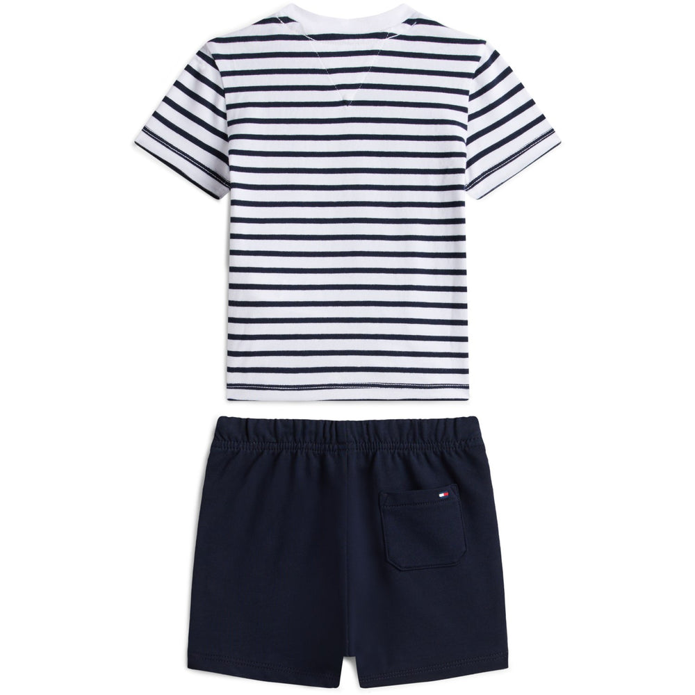 Tommy Hilfiger Dark Night Navy Essential Stripe Tee + Short Set - 62 is backordered and will ship as soon as it is back in stock.