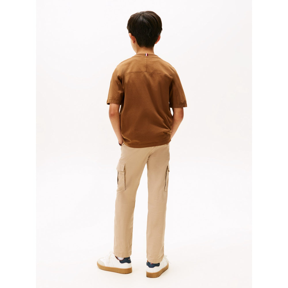 Introduce your little one to classic American style with the Tommy Hilfiger Pecan Nut Varsity Raised Print Tee. Crafted from soft, breathable fabric, this t-shirt features a bold, raised print that adds a touch of youthful charm. Its rich, pecan nut color and casual fit make it perfect for any day's adventure. Designed for easy care, its durability withstands frequent washing. Ideal for playful afternoons or relaxed outings, this tee combines comfort, style, and practicality seamlessly.