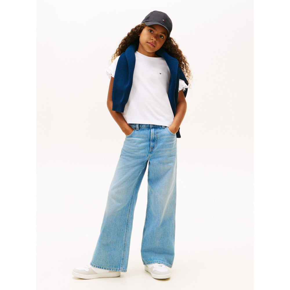 Discover the charm of simplicity with the Tommy Hilfiger White Essential T-Shirt, perfect for your little one's wardrobe. Crafted from soft, breathable cotton, this t-shirt boasts a classic fit and timeless design. Its crisp white hue is accented with the iconic Tommy Hilfiger logo, ensuring style and recognition. Ideal for daily wear, this tee combines effortless style with ultimate comfort.