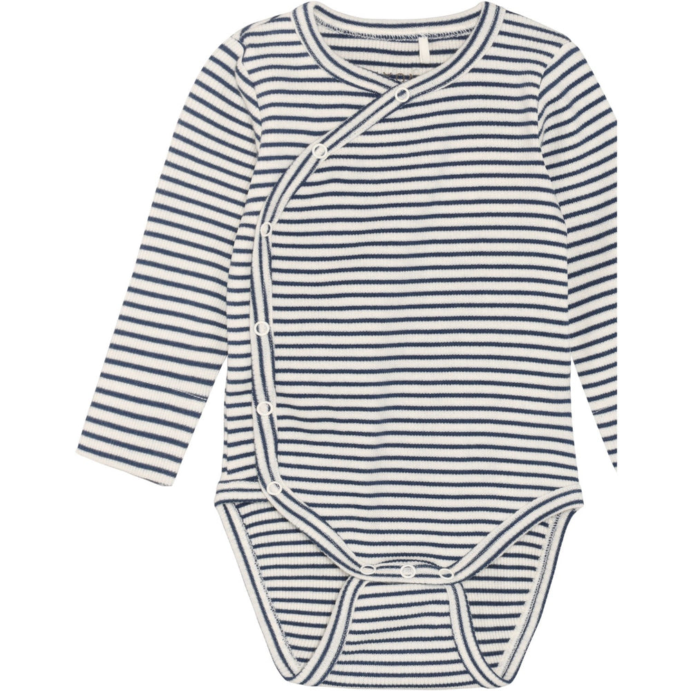 Introduce your little one to the cozy embrace of the FIXONI Vintage Indigo Wrap Body LS Rib bodysuit. Designed for comfort and easy wear, this plain bodysuit boasts a convenient wrap effect with secure snap button closures at the front and between the legs. Made from stretchy ribbed fabric certified by GOTS - organic CERES-0366, it ensures a flexible fit. Its timeless indigo hue and ribbed design combine style and functionality, perfect for your baby's daily adventures and gentle on delicate skin. Materials: 95% Cotton/ 5% Elastane Certifications: GOTS - organic CERES-0366