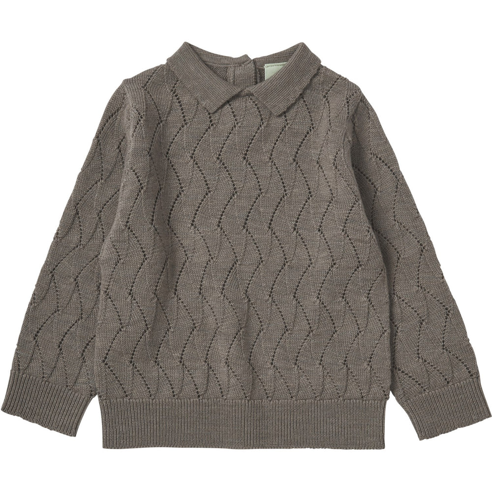 Wrap your little one in the cozy embrace of the FUB Hazel Melange Baby Pointelle Tee L/S. This charming knitted blouse features an intricate pointelle pattern, complete with a neat flat shirt collar and long sleeves. Pearl shell buttons adorn the back closure, adding a touch of elegance. Crafted from 100% OEKOTEX, RWS, and BLUESIGN certified merino wool, this tee is free from harmful chemicals and sourced from non-mulesed sheep. Available in solid or contrast color at the collar and sleeve hems, it's also machine washable thanks to eco-friendly treatment. Perfect for comfortable and stylish play days!
