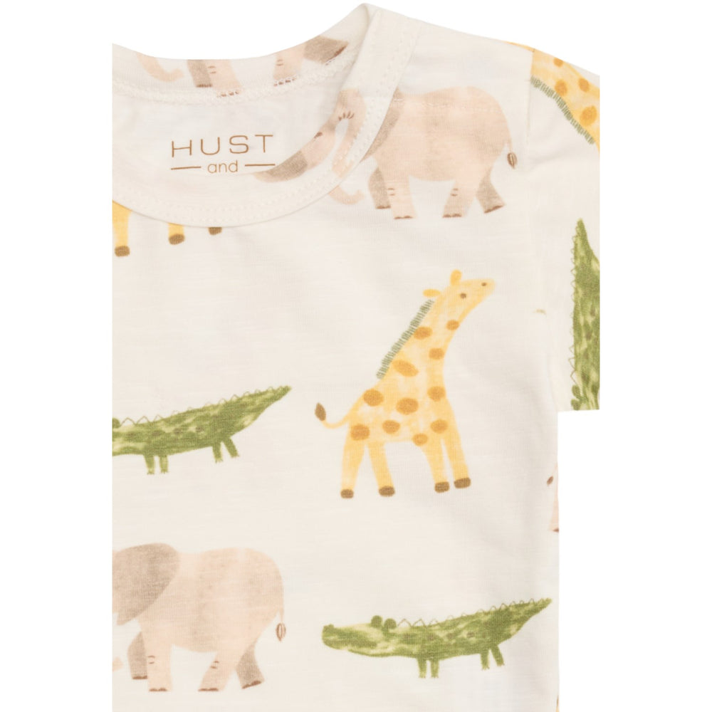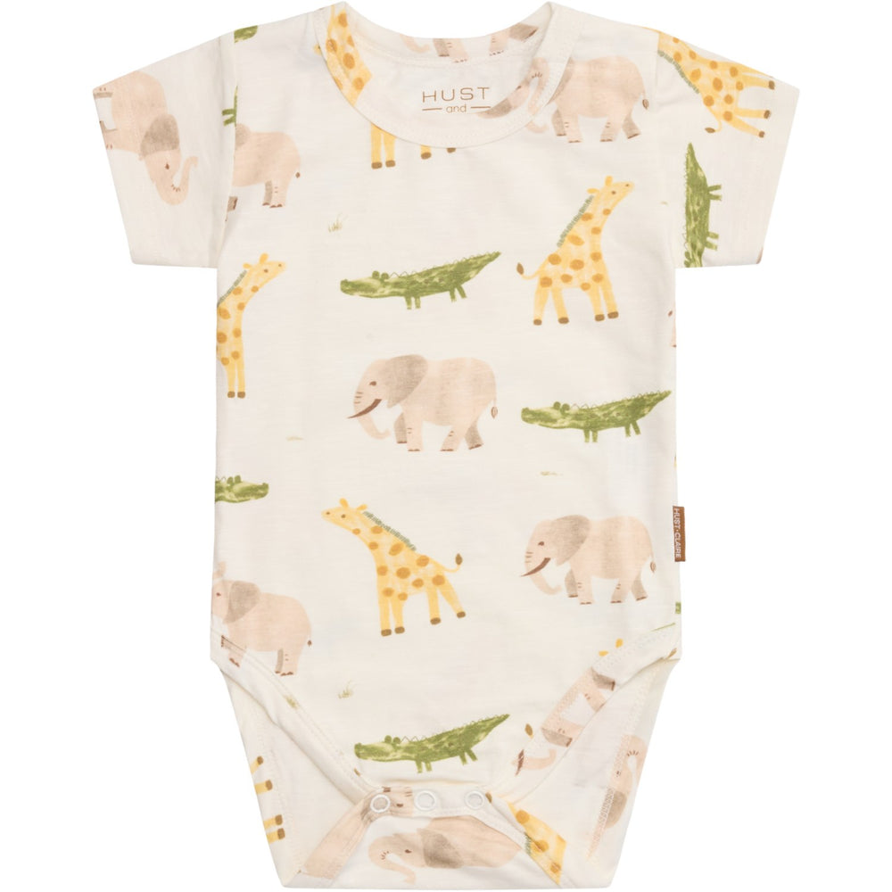 Introducing the delightful Hust & Claire Ivory Carly Bodystocking, a perfect blend of cuteness and practicality for your little adventurer. Crafted from soft, stretchy cotton, this short-sleeved bodysuit offers supreme comfort and flexibility, ensuring your child stays cozy whether at rest or in playful motion. Designed with a charming safari animal print, it adds a splash of fun to your child's wardrobe.