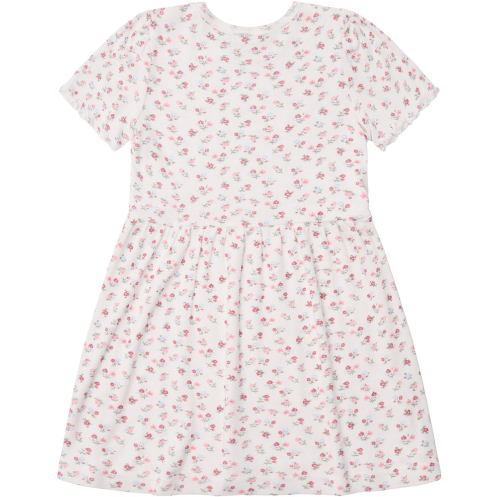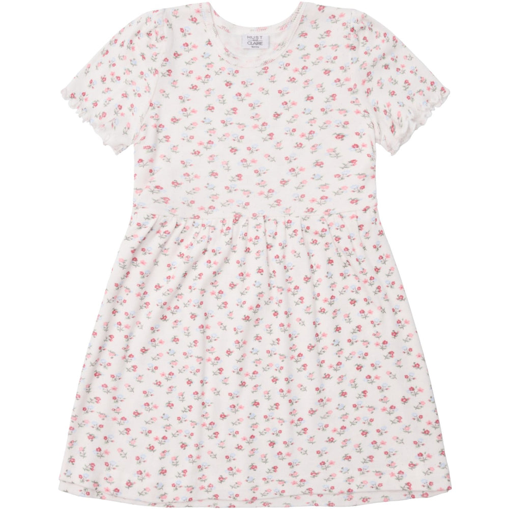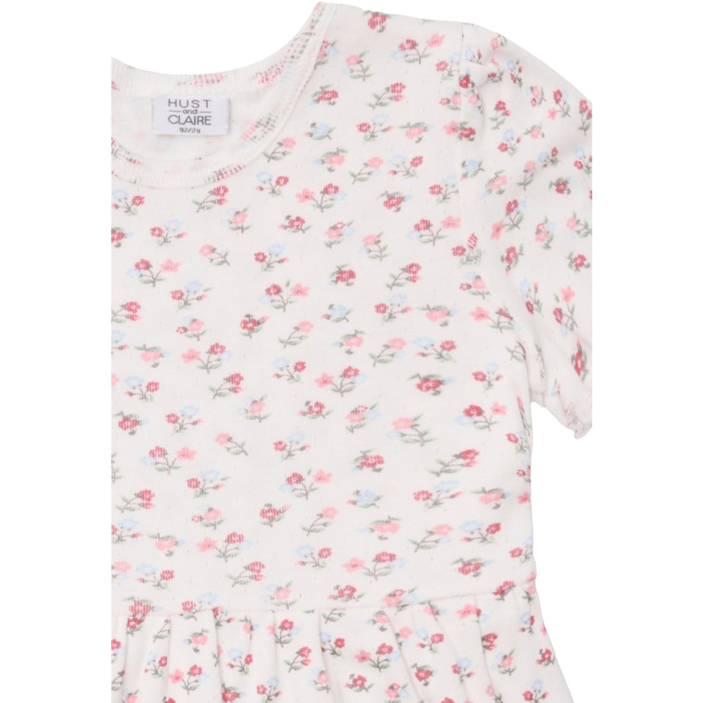 Introducing the charming Hust & Claire Ivory Donna Dress, an enchanting choice for your little one's wardrobe. Crafted from soft, stretchy cotton with 50% organic composition, this dress ensures both comfort and a positive environmental impact. The gorgeous floral print paired with a delicate eyelet pattern makes it visually captivating, while the baby-lock trim on the sleeves adds a subtle, sweet detail.