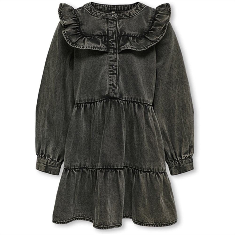 Kids ONLY Washed Black Shelly Frill Denim Dress