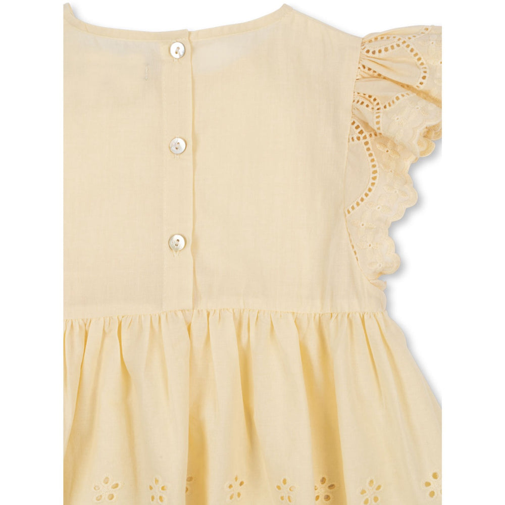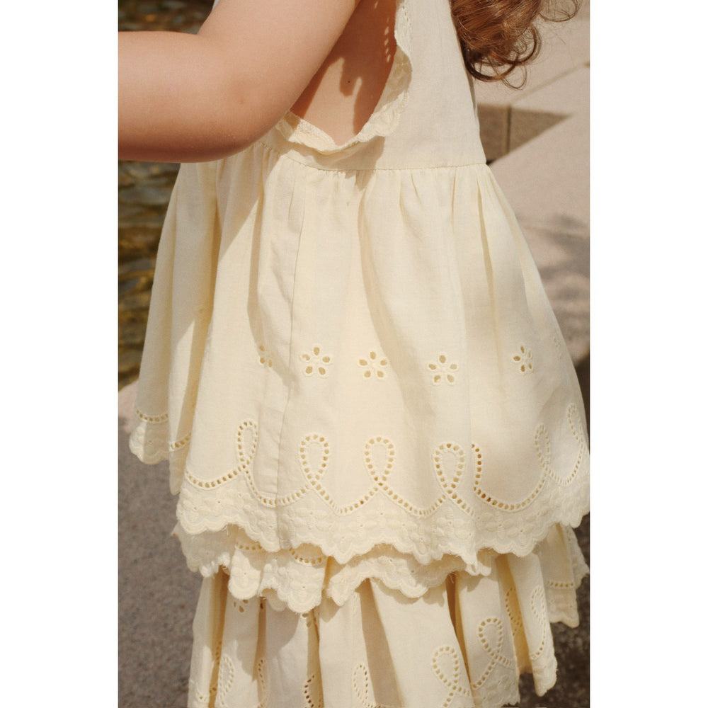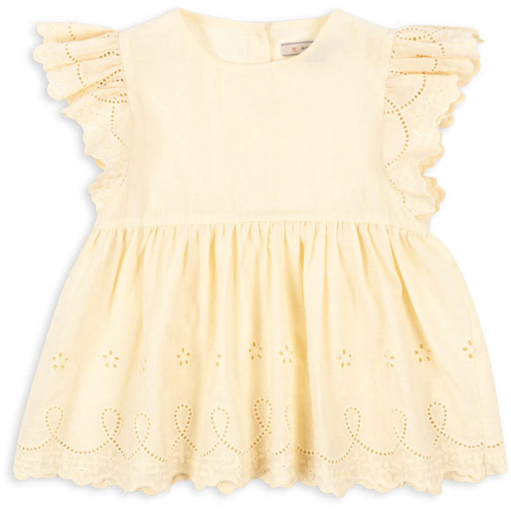 Discover the delightful Konges Sløjd Cloud Cream Posey Top, perfect for your little one. Crafted from 100% soft cotton voile, this top is both breathable and gentle on the skin. It features exquisite broderie anglaise details that add a touch of elegance. The creamy hue and charming patterns are perfect for versatile styling. Ideal for everyday wear, this top promises comfort and easy care, making it a must-have for children's wardrobes.