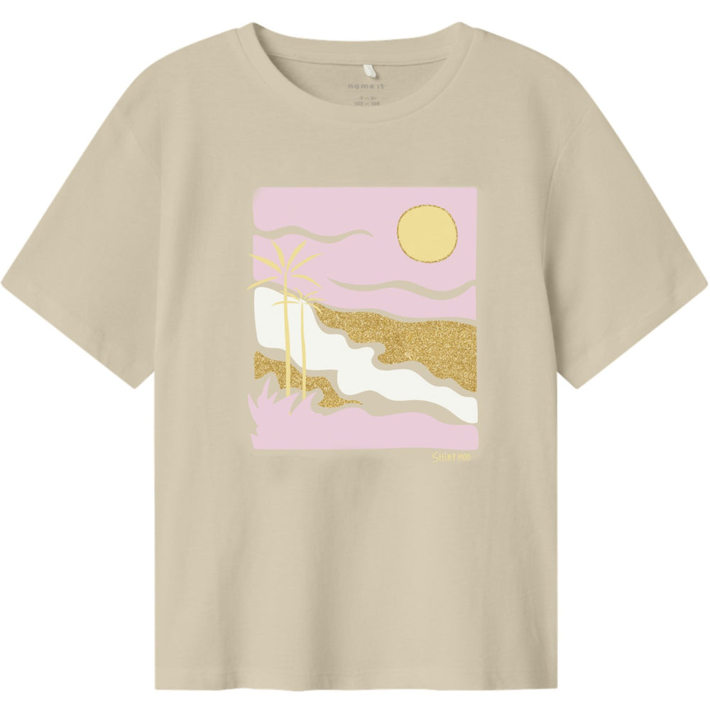 Introduce a dash of style and comfort to your child's clothing collection with the Name It Bleached Sand Jekan Regular T-Shirt. Crafted from soft, stretchy jersey fabric, this top ensures a gentle feel against the skin, coupled with ample freedom of movement, making it ideal for both dynamic play and relaxation. Featuring a classic round neck and short sleeves, the design is both timeless and practical. The t-shirt is adorned with a unique pigment print that adds a subtle charm and a glitter print that brings a sparkling touch, perfect for uplifting any outfit. Available in a regular fit, this t-shirt combines effortless style with easy wearability. It's not just a garment; it's a blend of fashion and functionality, crafted to meet the needs of growing children. Keep it simple with machine wash care, ensuring this top remains a favorite without extra hassle. Ideal for daily wear or special events, it promises to keep your little one looking cool and feeling comfortable.