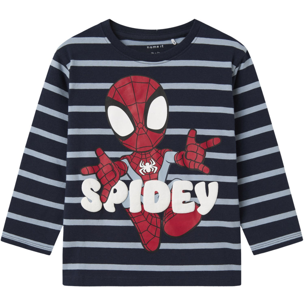 Introducing the "Name It Navy Blazer Dusty Blue Nmmjosue Spider Nreg Ss Top" - an excellent addition to your little one's closet, suitable both for daily use and special events. Crafted from jersey fabric, this top is not only lightweight and stretchy but also features a soft interior, ensuring utmost comfort and freedom of movement. Its rubber and foam prints add a soft touch and a vibrant, 3D spider design that pays homage to the beloved Spider-Man, making it a hit among young fans. Available in a regular fit with short sleeves and a round neck, it maintains both stylish appeal and practical wearability. Easy to care for, this top ensures durability and hassle-free maintenance. Perfect for pairing with casual jeans or dressing up for gatherings, it promises both style and comfort, making it an essential piece in your child's wardrobe.