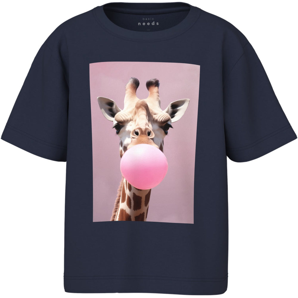 Introducing the delightful Name It Navy Blazer Giraffe Nmfvotea Ss Nreg Top, designed to bring comfort and style to your child's everyday adventures! This charming T-shirt features a realistic and detailed giraffe photo print, capturing the essence of fun and exploration. Crafted from soft, stretchy jersey material, it ensures a gentle touch and ample freedom of movement. With its round neck and short sleeves, this regular-fit top is as practical as it is stylish. Ideal for both casual outings and special occasions, it's a versatile addition to any young wardrobe. Plus, its easy care instructions ensure durability and fuss-free maintenance. Perfect for playful days, this tee promises both comfort and durability in a delightful package.