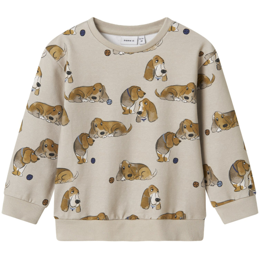 Dress your little one in the Name It Peyote Nmmkody Ls Nreg Sweat Unb for a trendy and comfy option in their wardrobe. This high-quality sweatshirt is crafted from unbrushed sweat fabric, featuring a smooth exterior and cozy looped interior. It showcases a vibrant all-over print using soft pigment techniques ideal for lighter fabrics. Designed with long sleeves, a round neck, and snug ribbed cuffs, it offers a relaxed fit that's perfect for active kids. Easy to care for, this sweatshirt combines style, comfort, and practicality, making it an excellent choice for everyday wear.
