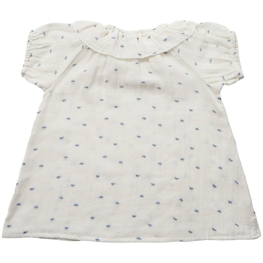 A cute and summery dress in antique white with a nice summer print. The dress has short sleeves with elastic trim and a ruffle detail along the neck for extra cuteness. Made from 100% cotton for comfort and breathability. Perfect for all-day play and adventure! Remember to follow the washing and wearing instructions to preserve the beauty of the dress.