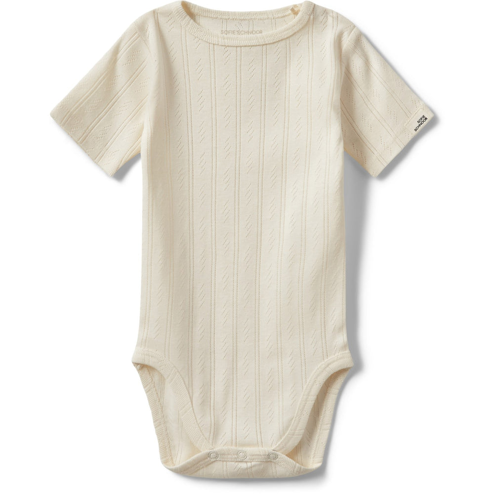 Make everyday life extra sweet with this charming bodystocking from Sofie Schnoor. In a delicate off-white shade, adorned with a delicate pointelle print, this bodystocking will feel soft and comfortable against your little darling's skin. The convenient snaps make it easy to put on and take off, while the classic design ensures your baby looks cute for any occasion. Perfect for everything from crawling time to family parties!