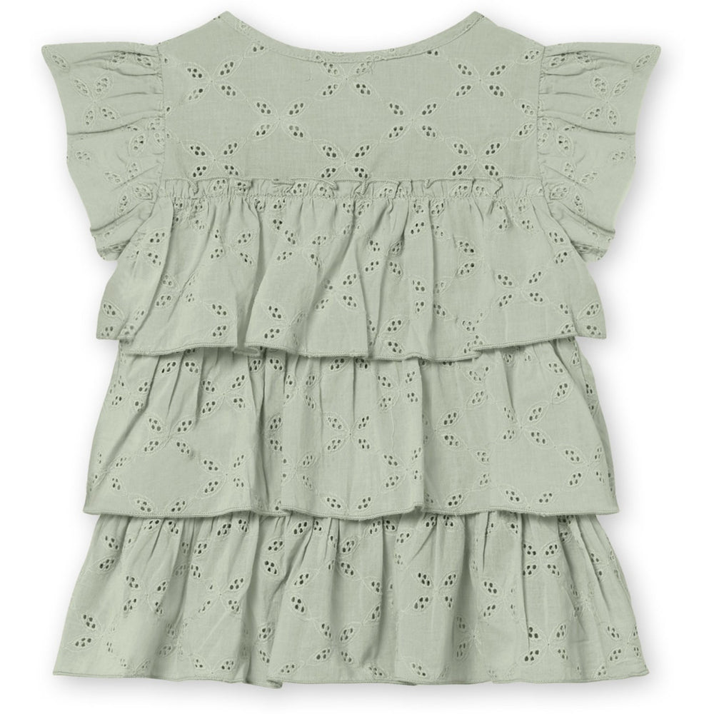 Discover the charm of our Fliink Aqua Gray Harper Top, perfect for your little one's wardrobe. Crafted from 100% cotton in a delicate broderie anglaise design, this top features adorable ruffles at the shoulders and a stylish peplum layer. The delightful aqua gray color enhanced with a simple pattern adds a touch of elegance. Designed for convenience, it includes two fabric-covered buttons at the shoulder for easy dressing. Gentle on the skin and easy to maintain, this top is machine washable and retains its beauty without tumble drying. Ideal for both special occasions and everyday wear, it combines fashion with functionality effortlessly. Materials: 100% Cotton Washing instructions: Remember to follow washing and user instructions