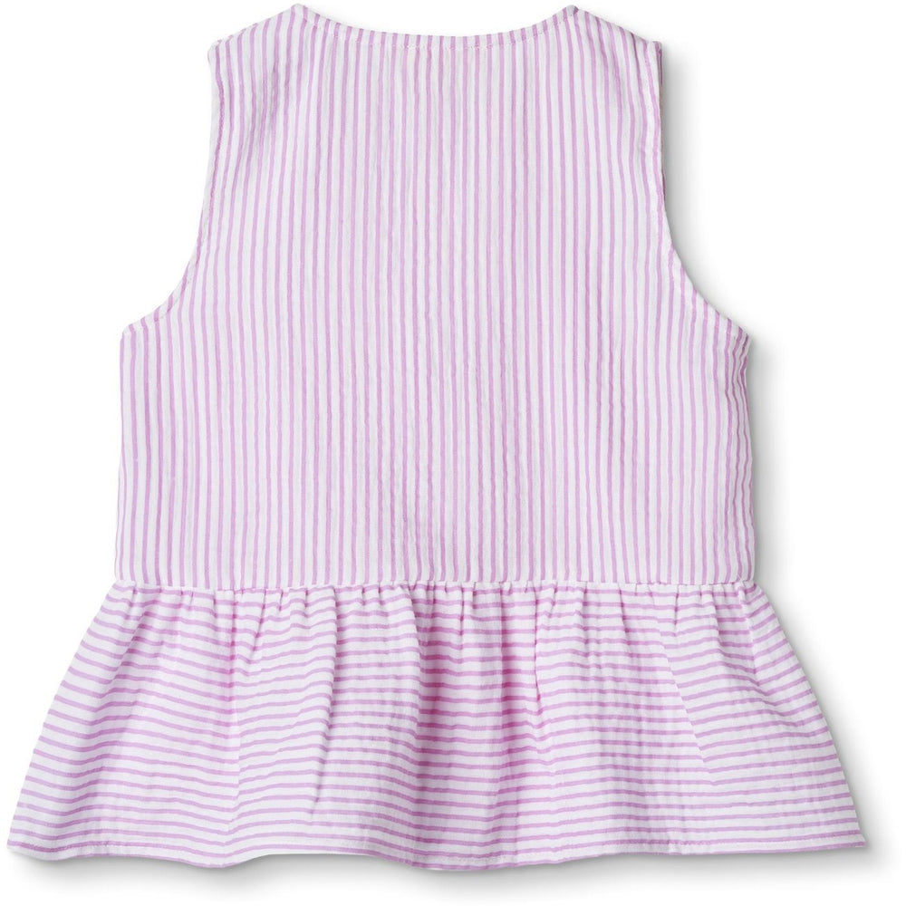 Discover the charm of our Fliink Cloud Dancer Pink Stripe Ciao Stripe Top, a delightful wardrobe addition for your little one. Crafted from 100% soft woven muslin cotton, this top is designed with comfort and style in mind. It features an enchanting pink and white stripe pattern that radiates a playful yet chic vibe. The wide straps with fabric-covered buttons not only add a stylish touch but also simplify dressing, making it hassle-free for both parents and children. The loose fit allows for layering with a long-sleeved top on cooler days or wearing alone when it's warm.