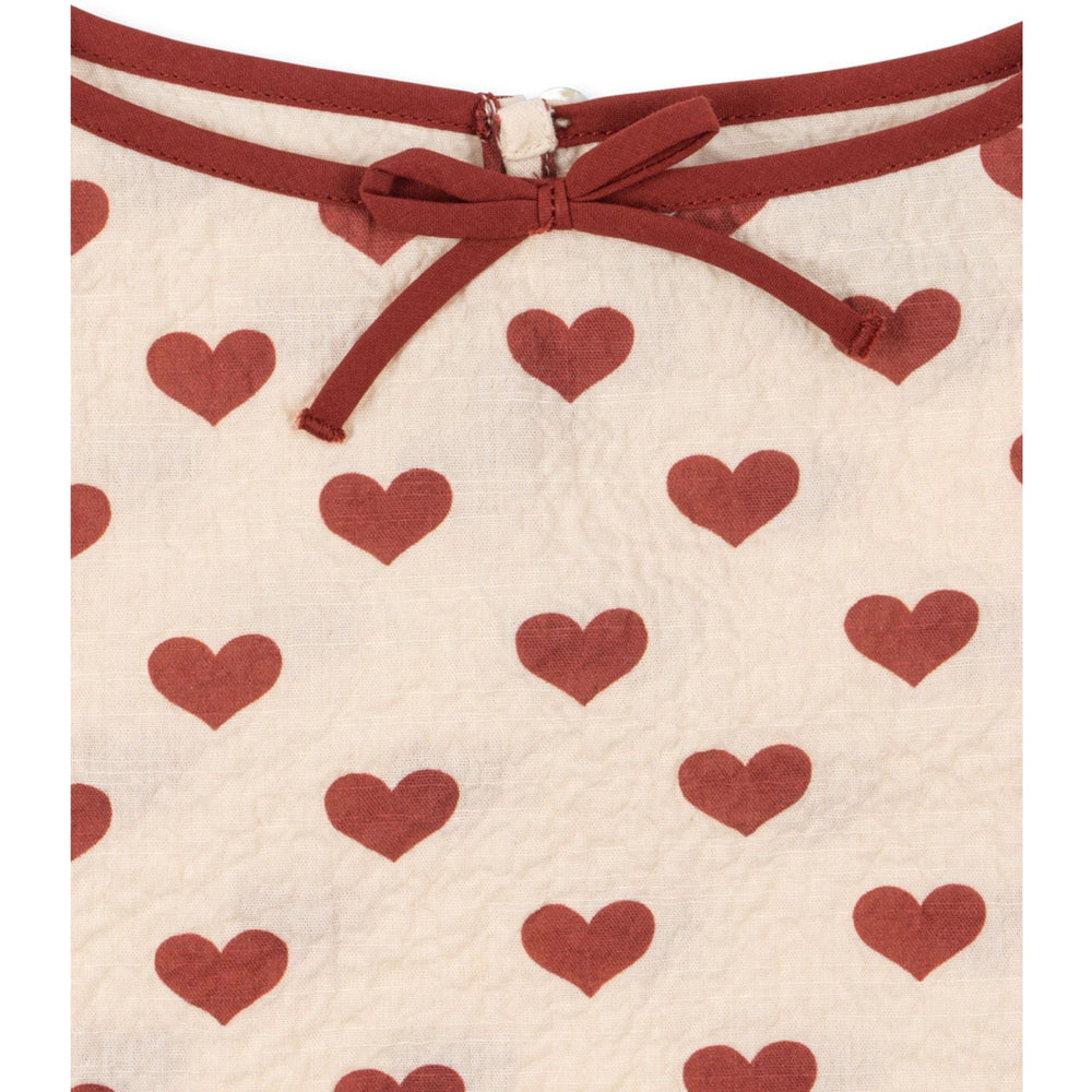 Discover the delightful Konges Sløjd Amour Rouge Ava Top, crafted from 98% organic GOTS-certified cotton and 2% elastane for a touch of stretch. This charming soft seersucker top features a loose silhouette, perfect for providing comfort and style. Its design flaunts a beautiful blend of care and functionality, enhancing wearability for children. Ideal for everyday wear, this top combines the essence of kid-friendly fashion with environmental care.