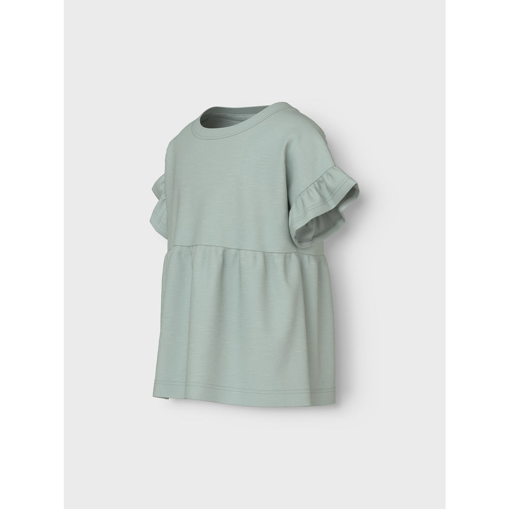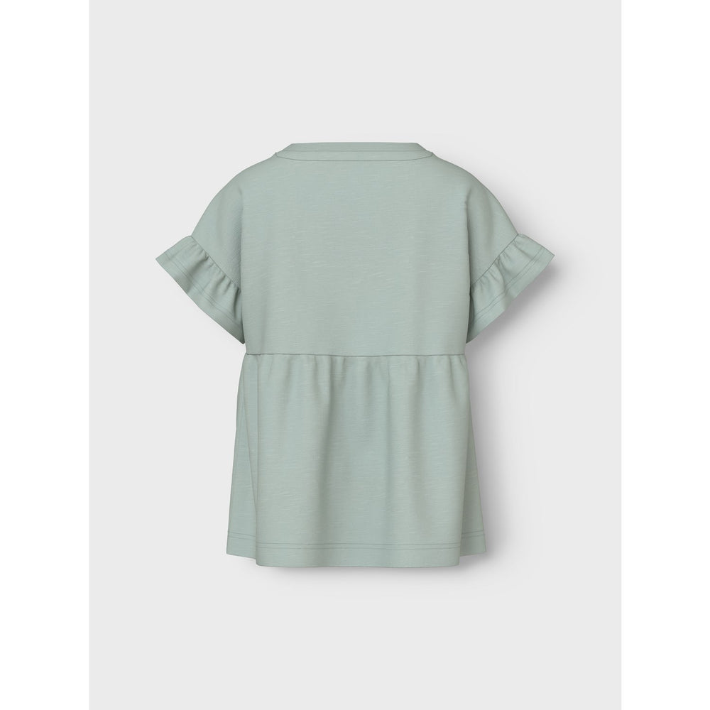 Introduce an adorable addition to your little one's wardrobe with the Name It Aqua Gray Vavina Top. Crafted from soft, stretchy jersey, this top combines comfort with ease of movement, ideal for active kids. It features a classic round neck and short sleeves, designed for a regular fit that suits everyday wear. Styled in a soothing aqua gray, it's versatile enough for both casual outings and special events. Plus, the durable material ensures this charming top stays in great condition, even after repeated washing. Perfect for your child's adventurous and playful lifestyle!