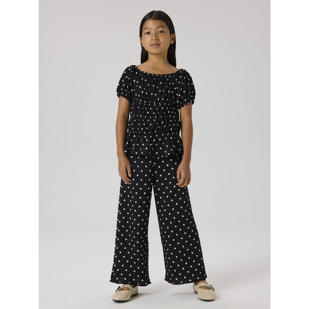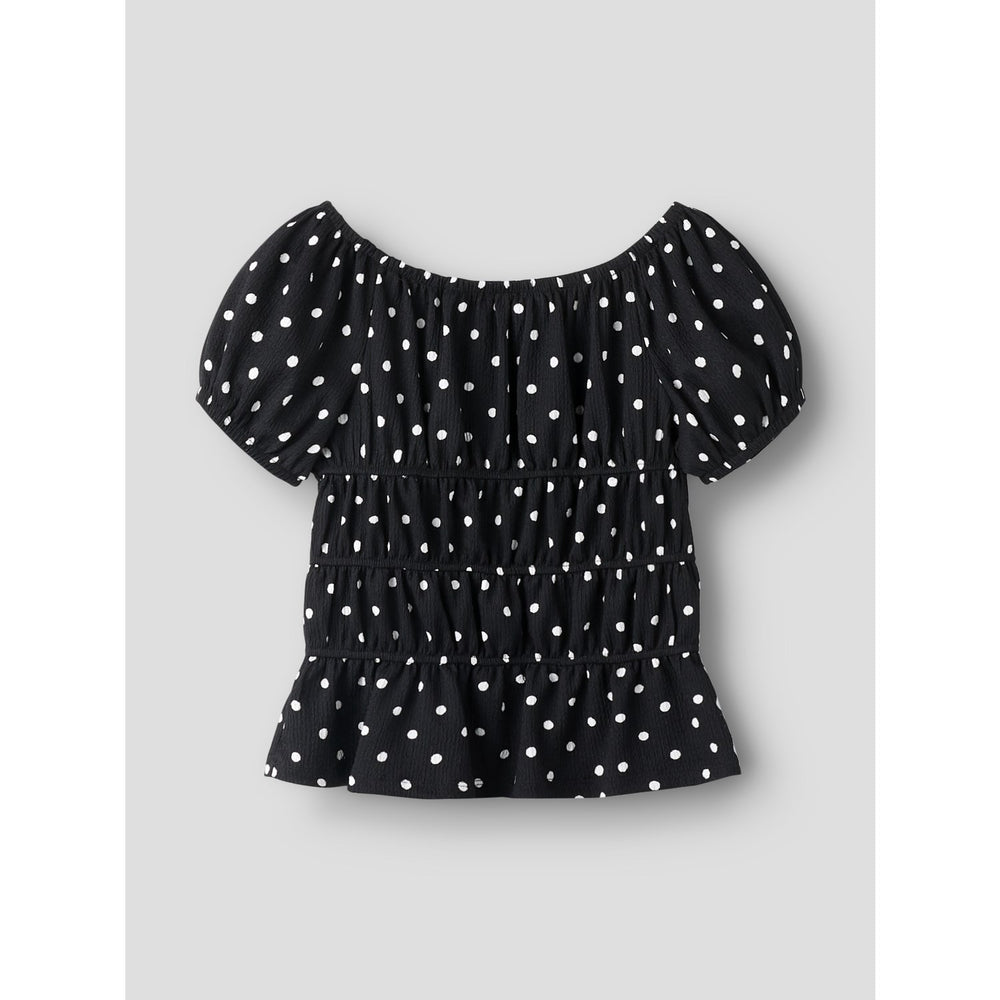 Discover the charm of the Name It Black Nkfrachel Ss Top, a must-have for any child's closet. Made from soft, stretchy jersey, this top ensures ultimate comfort and freedom of movement, perfect for active kids. Designed with a stylish boat neck and cute short sleeves enhanced with smock detailing, it blends functionality with a sleek, everyday look. Its regular fit and easy-care material make it ideal for both lively playdates and special events. Delight in the versatility and timeless appeal of this black top, a perfect blend of fashion and practicality for children. Fit: Regular Materials: 65% Polyester, 34% Polyester - Recycled, 1% Elastane