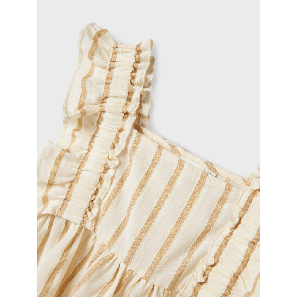 Introducing the Name It Bleached Sand Cloud Dancer Herdon Cap Top, a quintessential addition to your child's summer wardrobe. Crafted from woven fabric with a classic criss-cross pattern, this top is both stylish and comfortable. Featuring a square neck and cap sleeves, it's designed for easy wearability and a regular fit that suits every child. The delightful print is spread evenly across the top, adding a touch of charm to its overall aesthetics. Ideal for both sunny days and balmy evenings, this top ensures your child looks great and feels comfortable, making it perfect for all sorts of summer adventures. Easy to care for and durable, it remains vibrant and maintains its shape even after regular washing.