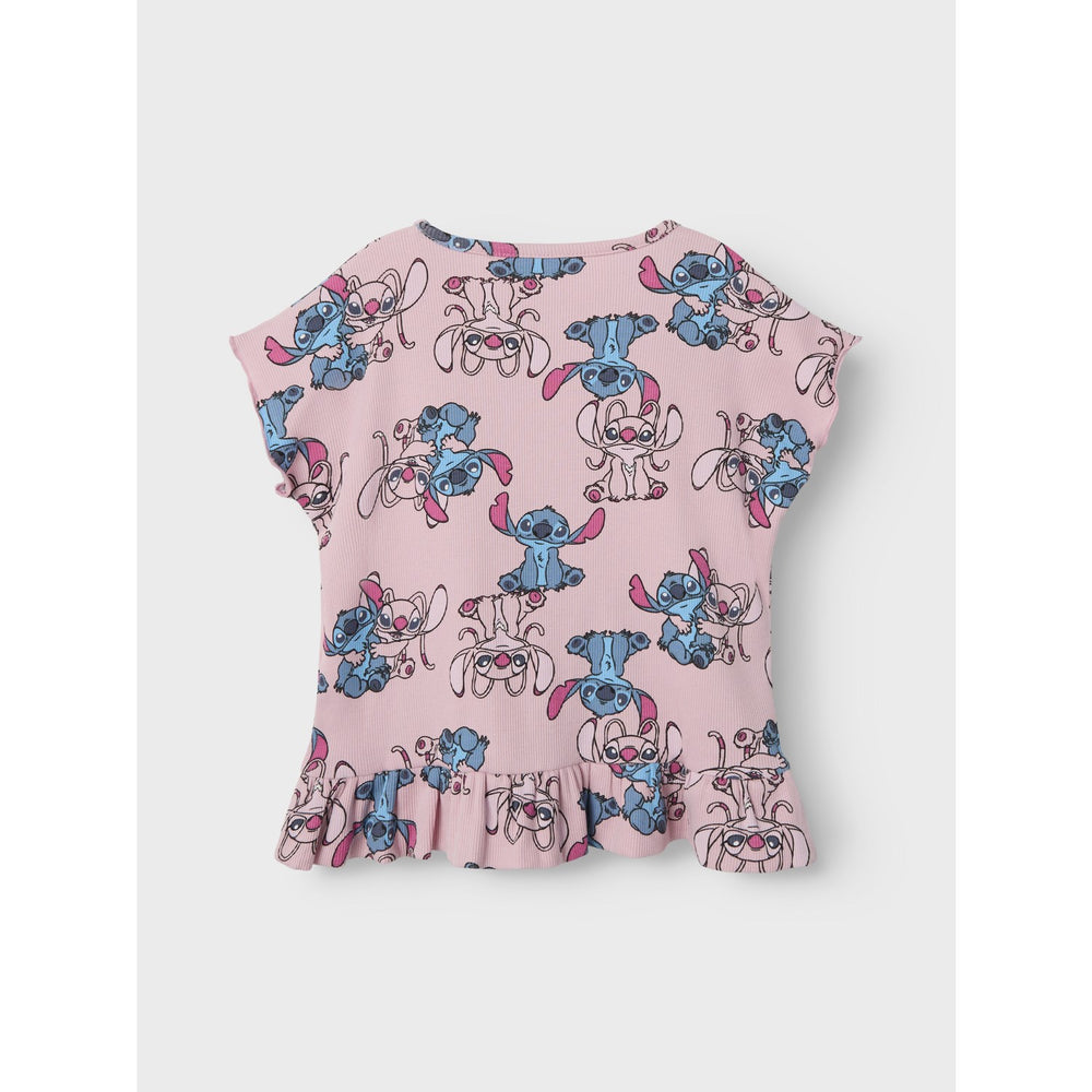 Brighten up your little one's wardrobe with the charming "Name It Cameo Pink Asbina Stitch Regular Top." Crafted from a rib knit that showcases a classic vertical striped pattern, this top not only offers excellent elasticity but ensures a cozy and snug feel. Adorned with an adorable all-over print featuring Disney's beloved character Stitch–the lovable rogue who teaches us about the essence of family and embracing our uniqueness–this piece stands out with its delightful aesthetic.