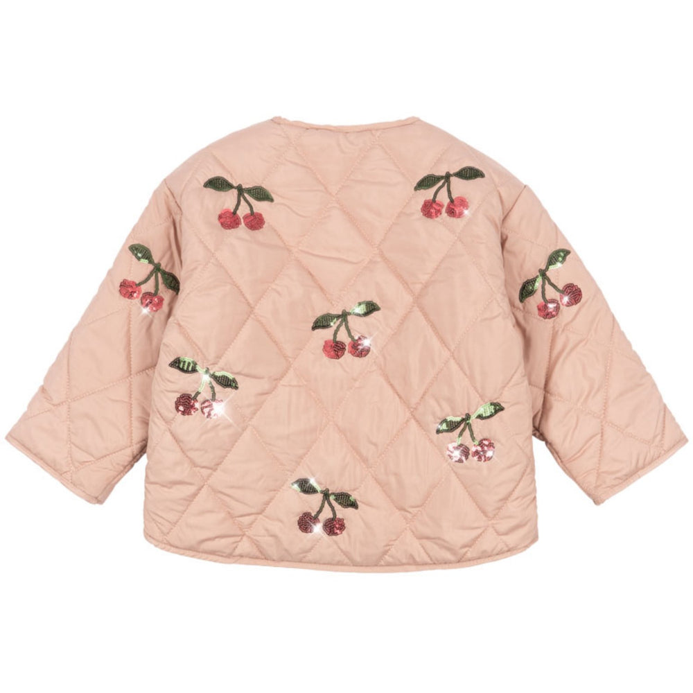 Discover the charm of Konges Sløjd's Ma Grande Cerise Flora Sequin Jacket, perfect for your little one! Crafted from a lightly padded quilt, this jacket dazzles with decorative sequins. Its casual, slightly loose fit, classic round neck, and slim cuffs blend style with comfort, making it an ideal choice for playful outings. Easily cared for, this piece combines practicality and enchanting design in one.
