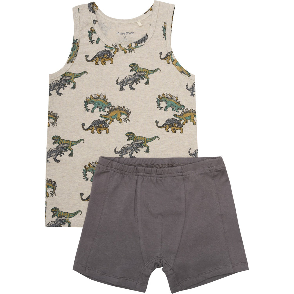 Discover the Minymo Beige Melange Underwear Set for your little one, featuring a stylish undershirt with wide straps and a vibrant all-over print, paired with plain underpants for a classic touch. Crafted from materials certified by OEKO-TEX® STANDARD 100 (Cert. No. 2276-364 DTI), this set ensures maximum comfort without compromising on style. Perfect for everyday wear, the soft fabric and snug fit make it an ideal choice for your child's wardrobe. Easy to care for and delightful in design, this set is as functional as it is fashionable.