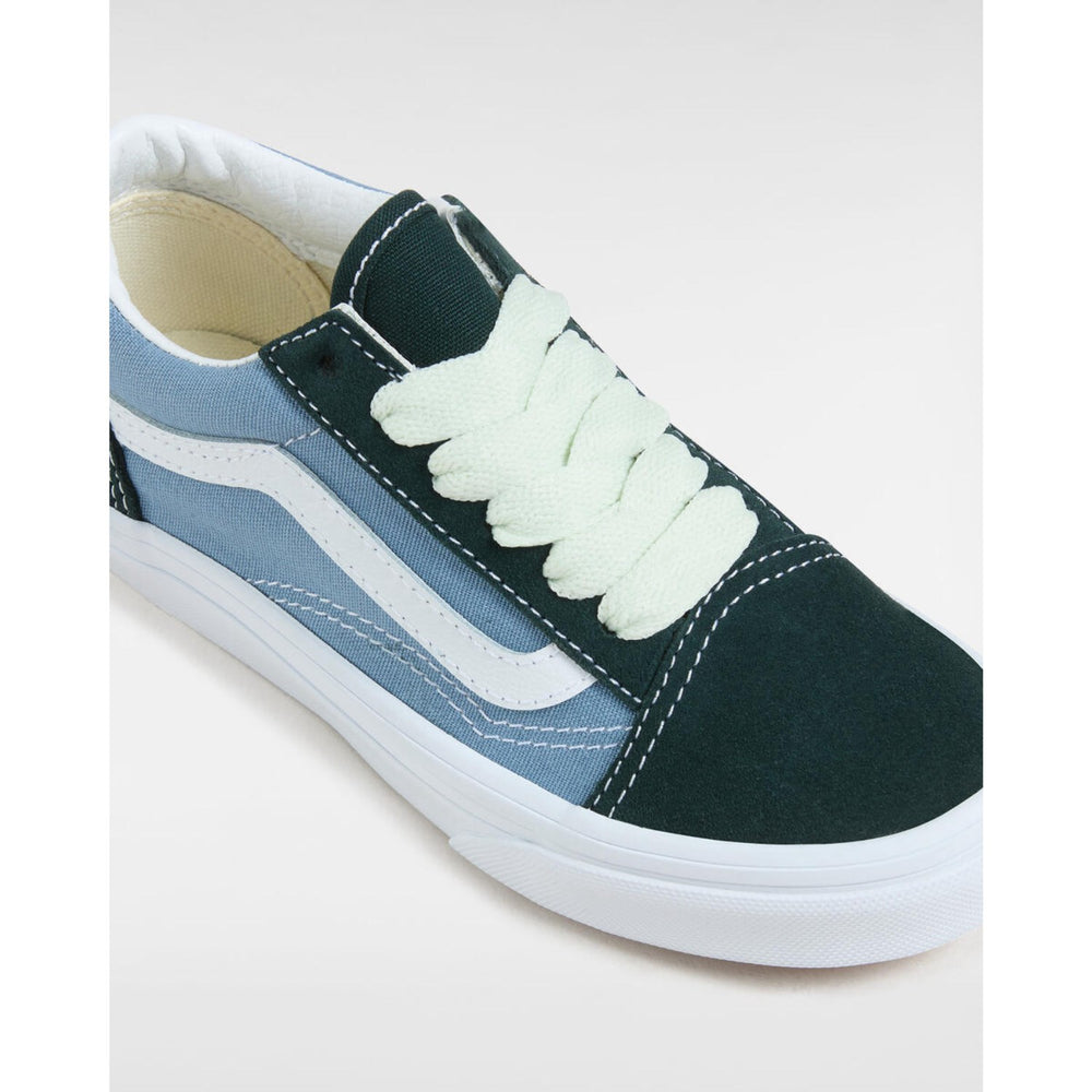 Introducing the VANS Green/Blue Old Skool 2-Tone Sneakers, a vibrant addition to any child's wardrobe. Crafted from durable materials, these sneakers boast a classic design enhanced with eye-catching green and blue hues. Ideal for active kids, they ensure comfort with a snug fit and are easy to care for, promising both style and practicality. Perfect for everyday wear, they bring a pop of color and reliable performance to your child's adventures.