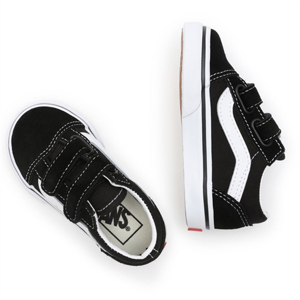 Introducing the VANS Old Skool V Black Sneakers: a classic staple for any child's wardrobe! Crafted from durable materials, these iconic sneakers feature an easy-on velcro closure and a supportive fit, perfect for growing feet. The sleek black design makes them versatile for all occasions while providing exceptional comfort and wearability. Ideal for both playtime and casual outings, these shoes promise to keep your little ones stylish and comfy all day long!