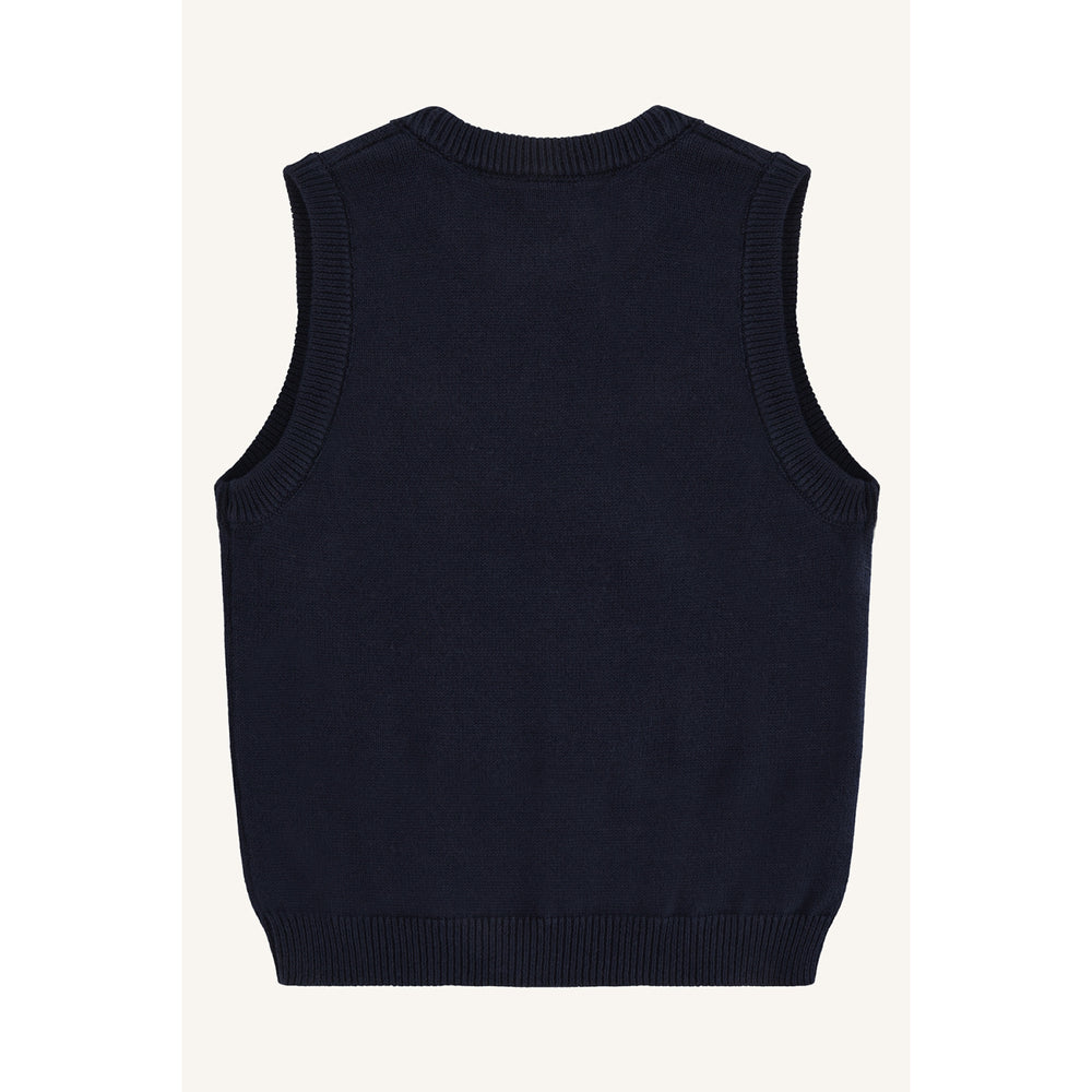 Dress your little one in the charming Hust & Claire More Navy Perry Deer Vest, perfectly blending style and comfort. Crafted from soft, high-quality materials, this vest features a playful deer pattern in a sophisticated navy color. Its comfortable fit ensures easy wearability, ideal for active children. This vest is not only stylish but also easy to care for, making it a practical choice for everyday adventures. Fit: Regular Materials: 100% Cotton (organic) Materials and care: Iron At A Maximum Sole-Plate Temperature Of 150°C, Do Not Tumble Dry, Do Not Bleach, Do Not Dry Clean Washing instructions: 30°