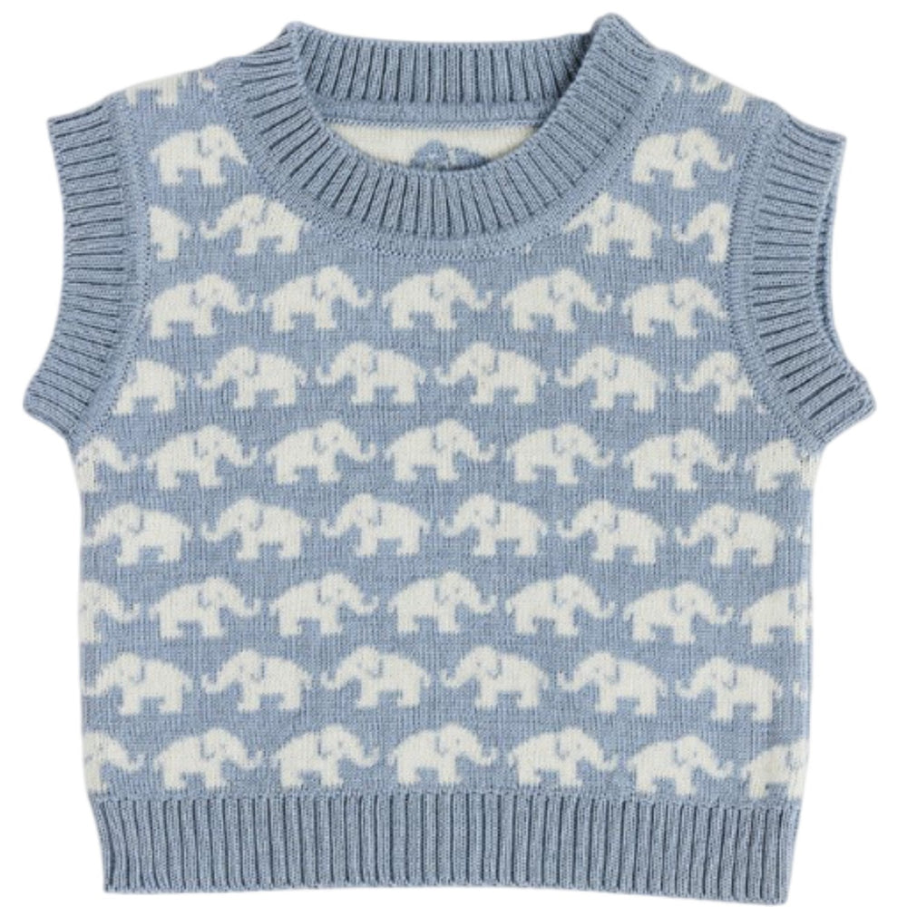 Smallstuff Blue Vest Ao Elephants Merino Wool