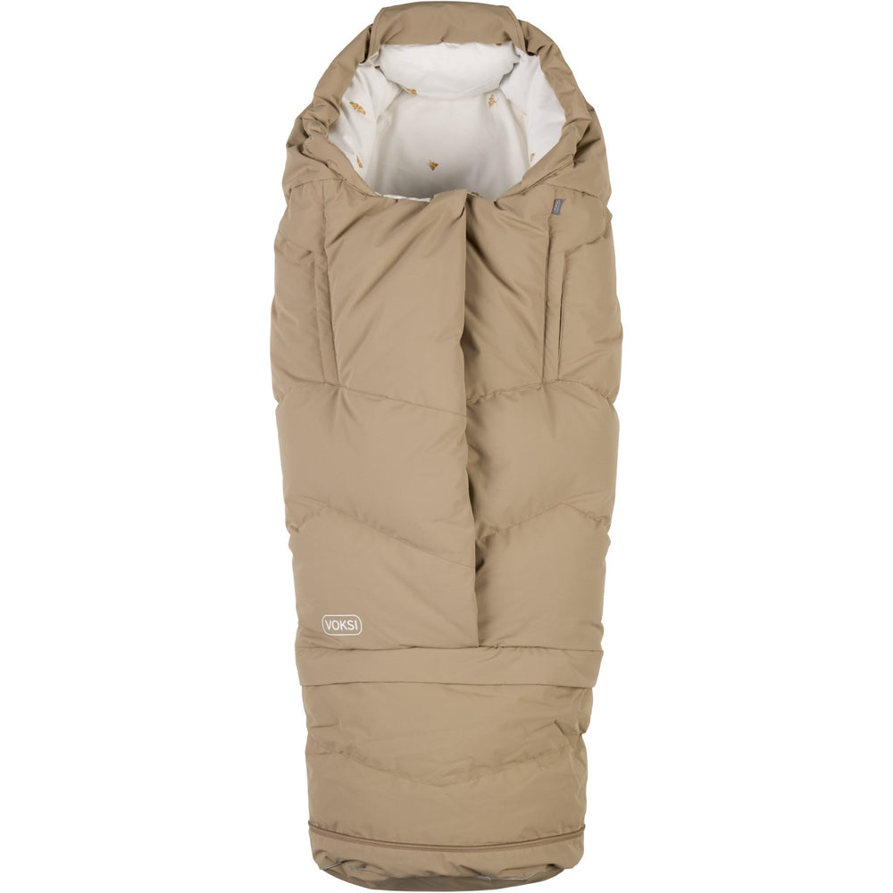 Explore the wonders of the Voksi® Dark Sand City North Wings Sleeping Bag, meticulously crafted to accompany your child from newborn age up to 4 years with its clever extendable section. Embracing both safety and comfort, this sleeping bag features high-quality natural materials including wool and down. Wool in the back ensures temperature regulation and dryness, while the top-quality down filling provides optimal insulation to keep your child warm, even in colder climates.