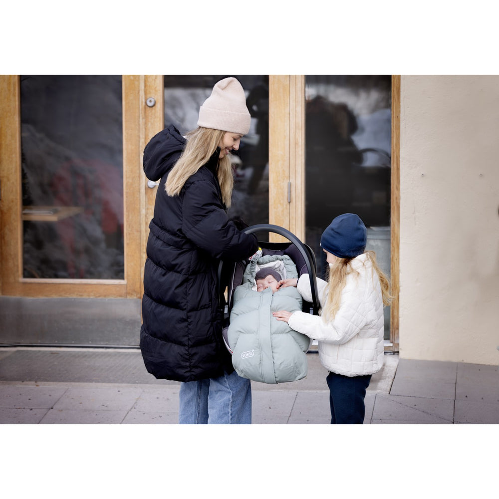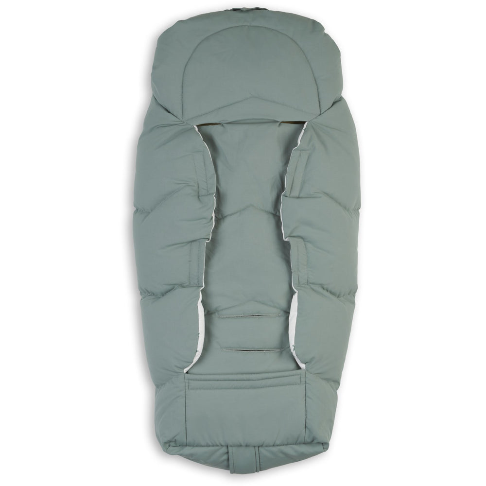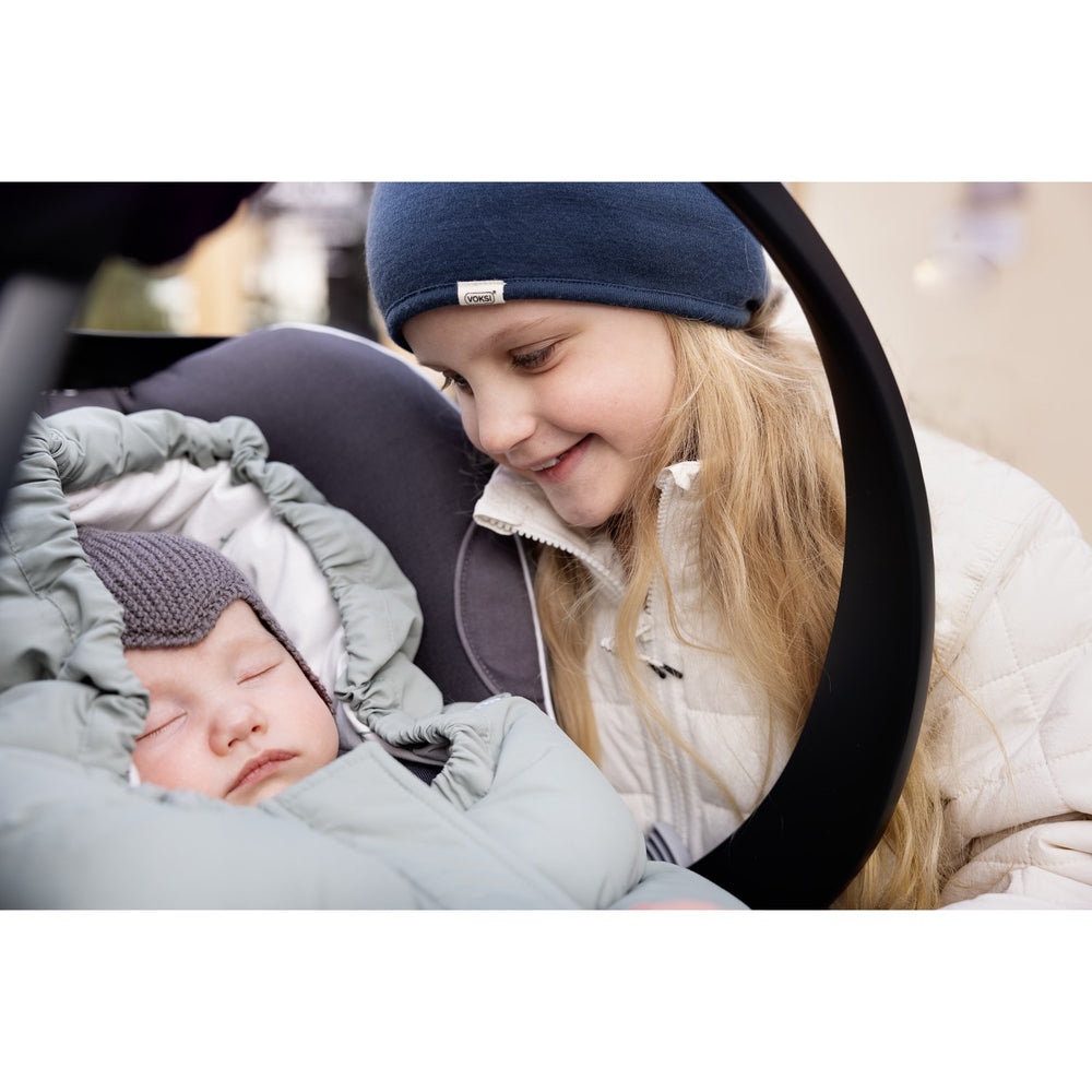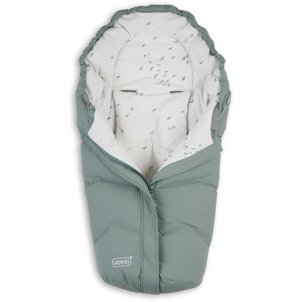 Discover cozy comfort for your little one with the Voksi® Sea Green Move Sleeping Bag. Specially designed for baby car seats, this sleeping bag combines a wool-filled bottom for warmth and a down-filled top for insulation, ensuring your infant's comfort in varying temperatures. Its versatile design allows full opening for warmer days or indoor use, and features an easy-to-use tightening mechanism around the baby’s head for a snug fit. Safety is paramount with its crash-tested certification in BeSafe infant car seats, enhanced by a quick-release zipper for ease of use. Perfect for keeping your baby warm, secure, and entertained during travels, the Voksi® Move makes outings more enjoyable and stress-free.
