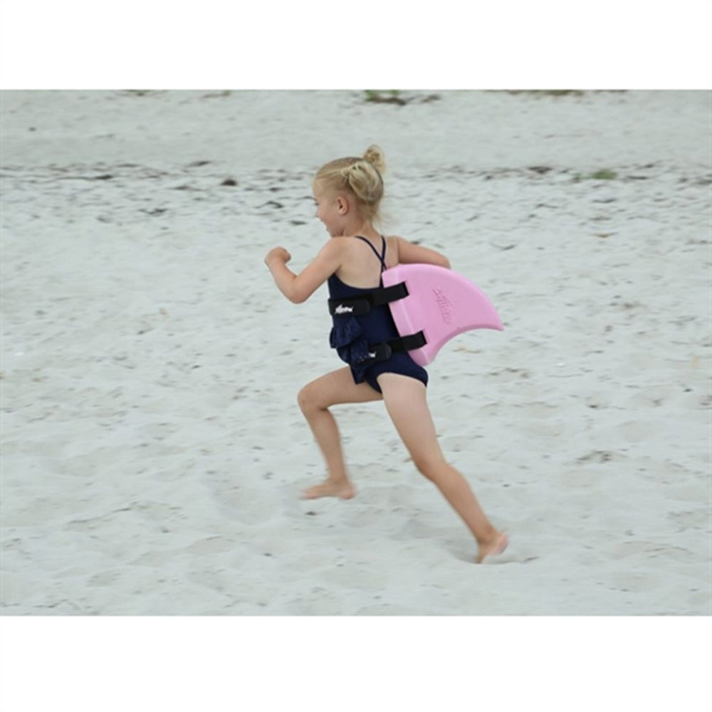 Super smart patented shark fin the kids can get on their backs. It ensures that the children are kept above water so that they can safely swim around. In short, it helps the children feel safe and comfortable being in the water. The children can still move without it bothering them.