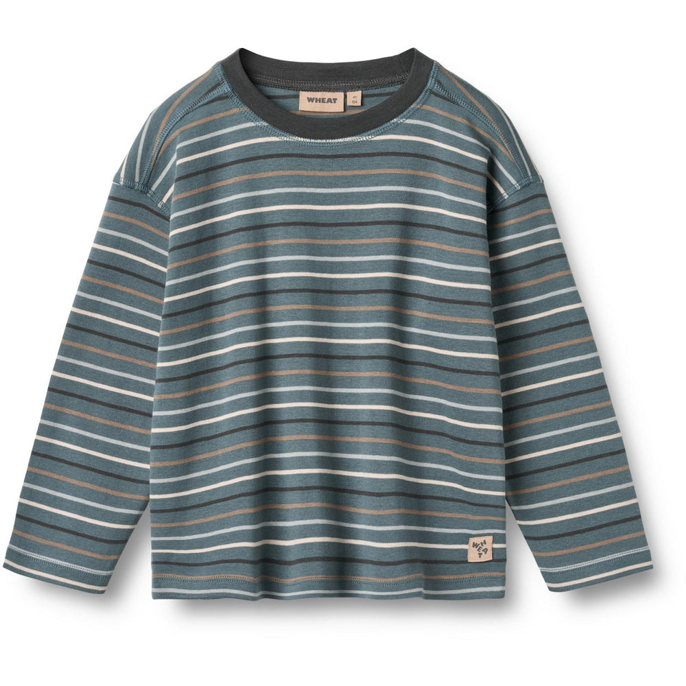 Discover the charm of the Wheat Blue Multi Stripe Blouse Hans, a delightful addition to any junior's wardrobe. Crafted from 100% organic cotton that meets the Standard 100 by OEKO-TEX®, this blouse ensures your child enjoys utmost comfort in a sustainable fashion. Its loose fit and dropped shoulders, enhanced by unique flatlock details at the shoulders and armholes, offers a relaxed style while ensuring easy movement.